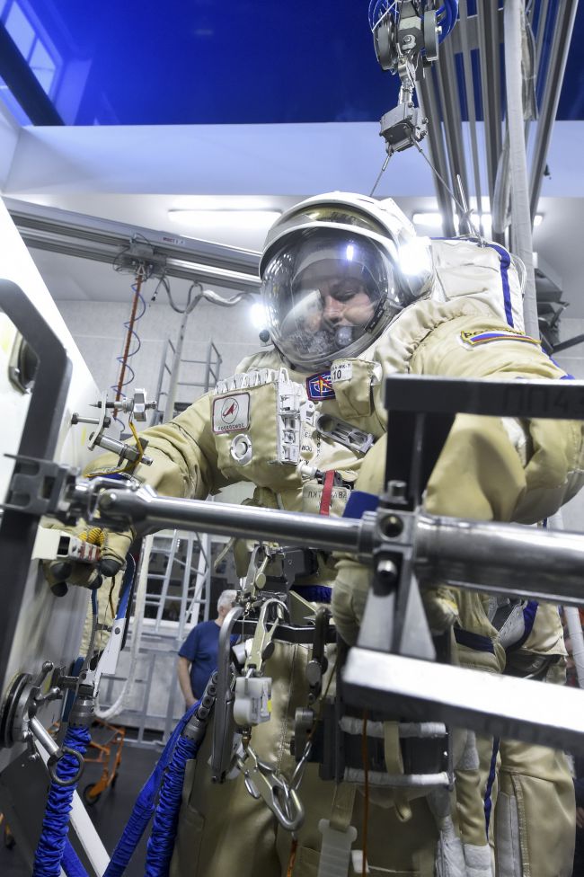 Во время экспедиции российские члены экипажа выполнили один выход в открытый космос продолжительностью 7 часов 17 минут 24 секунды. Космонавты установили моноблок монитора всего неба и заменили фиксирующие платы доставляемого универсального рабочего места на служебном модуле; демонтировали с МИМ2 пробоотборники по космическому эксперименту «Тест», панели по эксперименту «Выносливость» и штанги блока входного преобразователя научной аппаратуры «Индикатор-МКС»; утилизировали демонтированное оборудование путём отталкивания с переносного рабочего места манипулятора ERA.