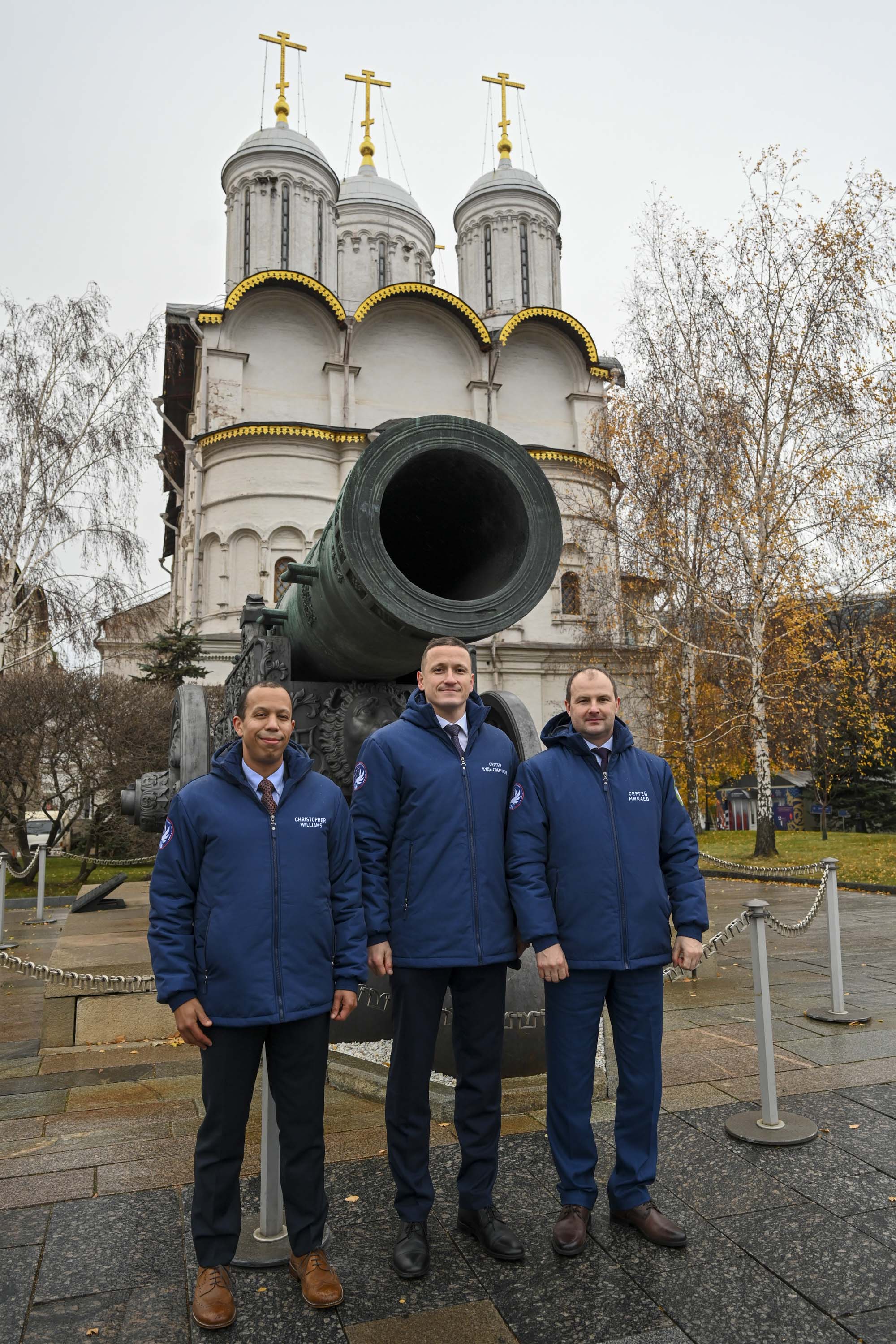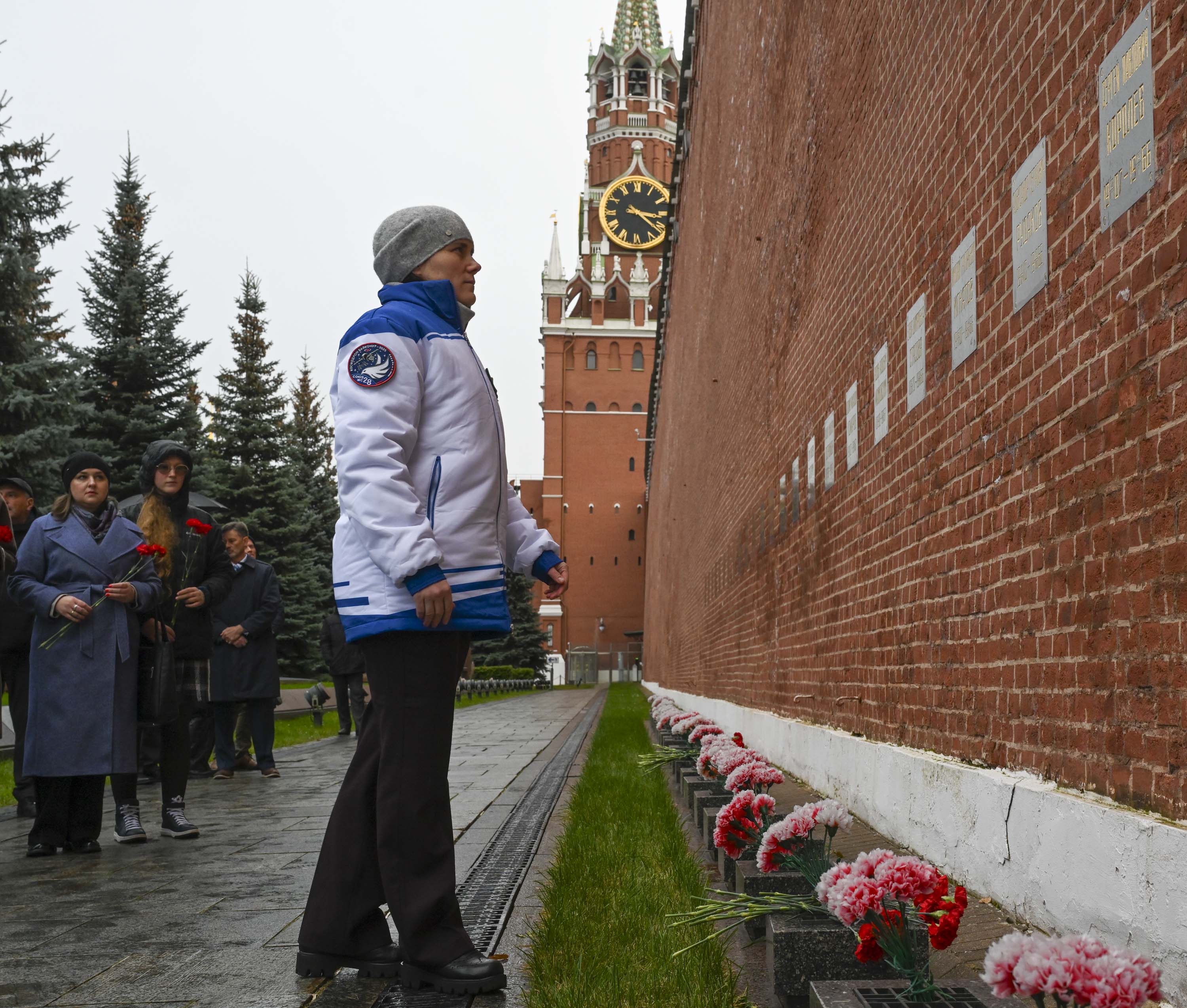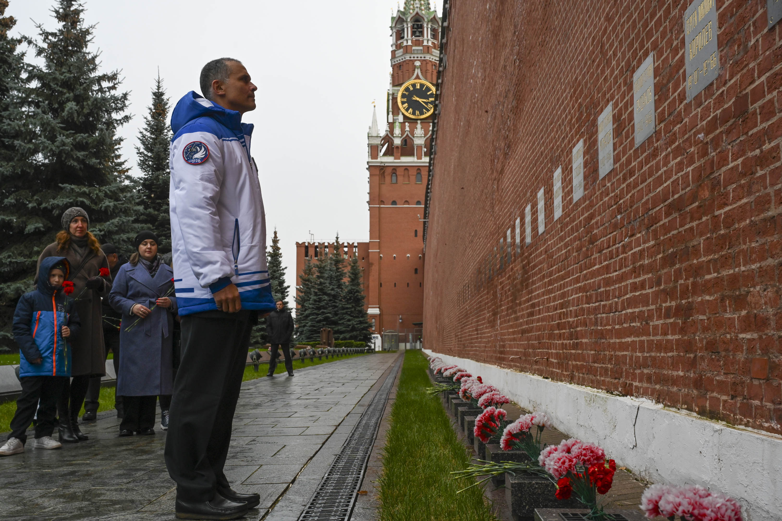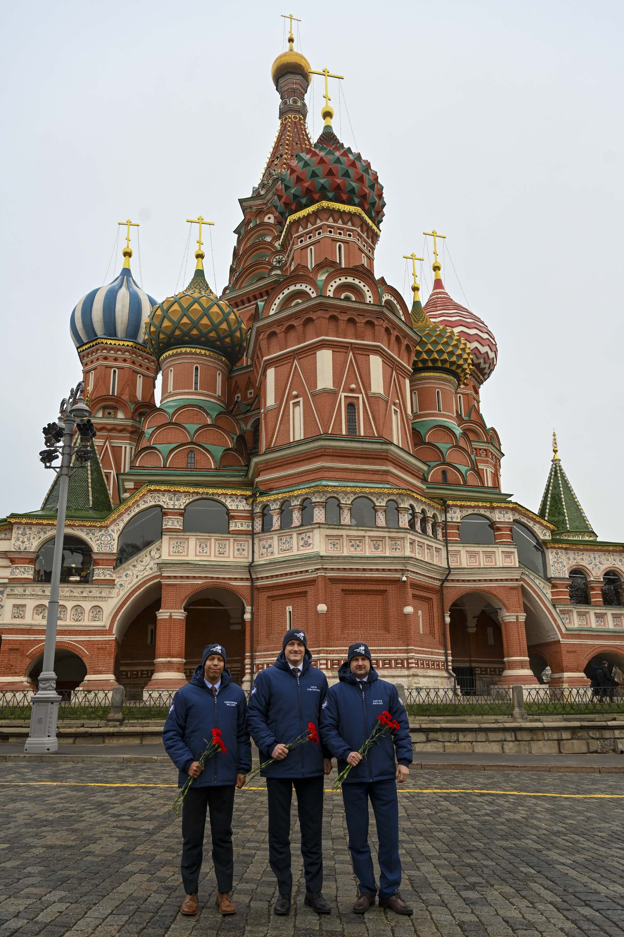 Далее основной и дублирующий экипажи, а также сопровождающие их работники ракетно-космической отрасли отправились в Москву. Делегация возложила цветы и почтила память Сергея Королёва, Юрия Гагарина и космонавтов, захороненных в некрополе у Кремлевской стены.