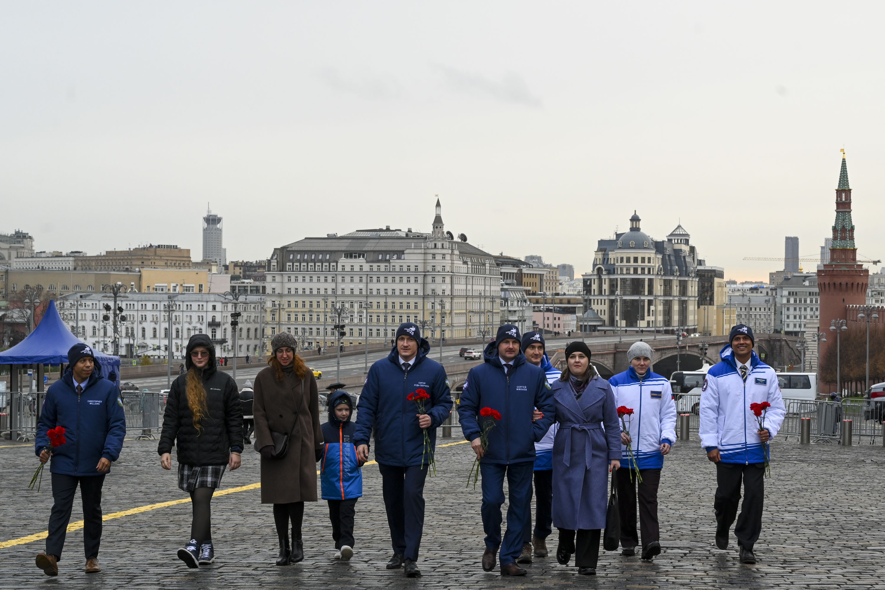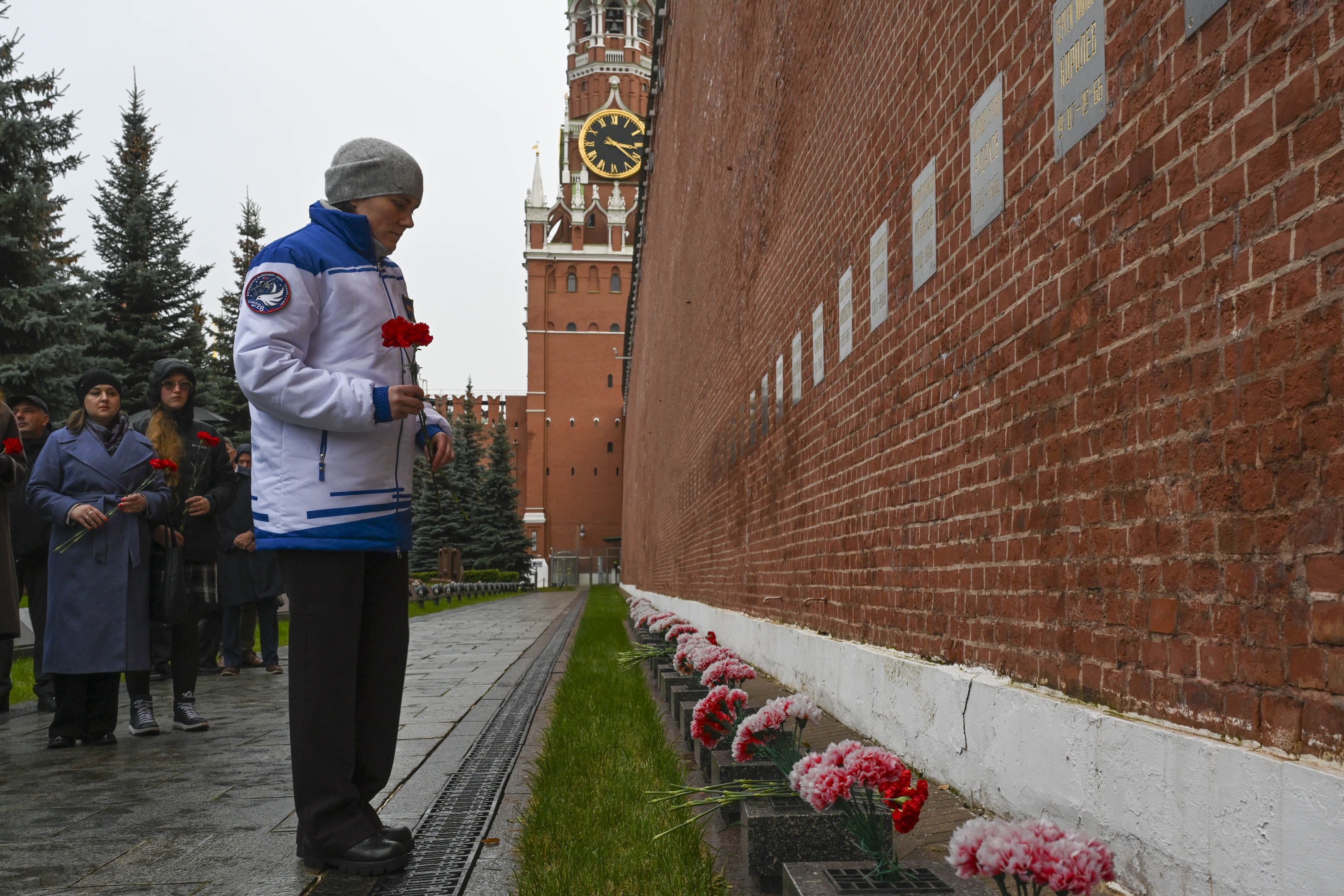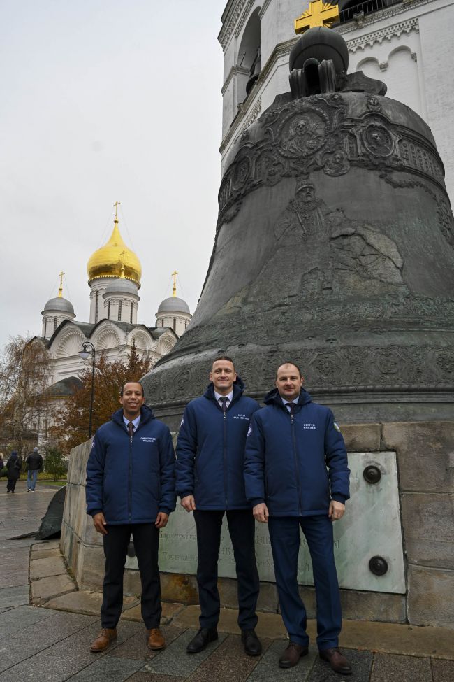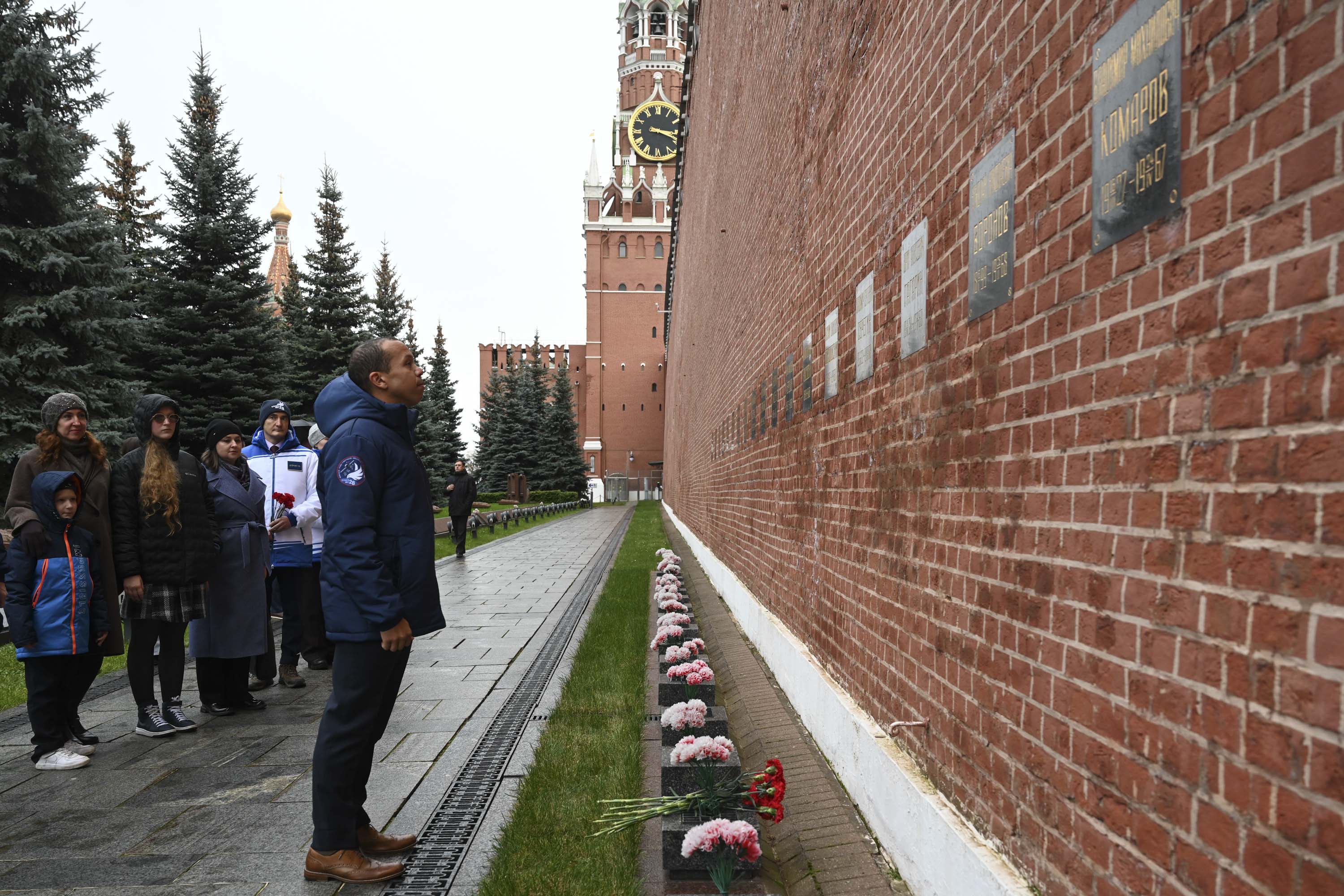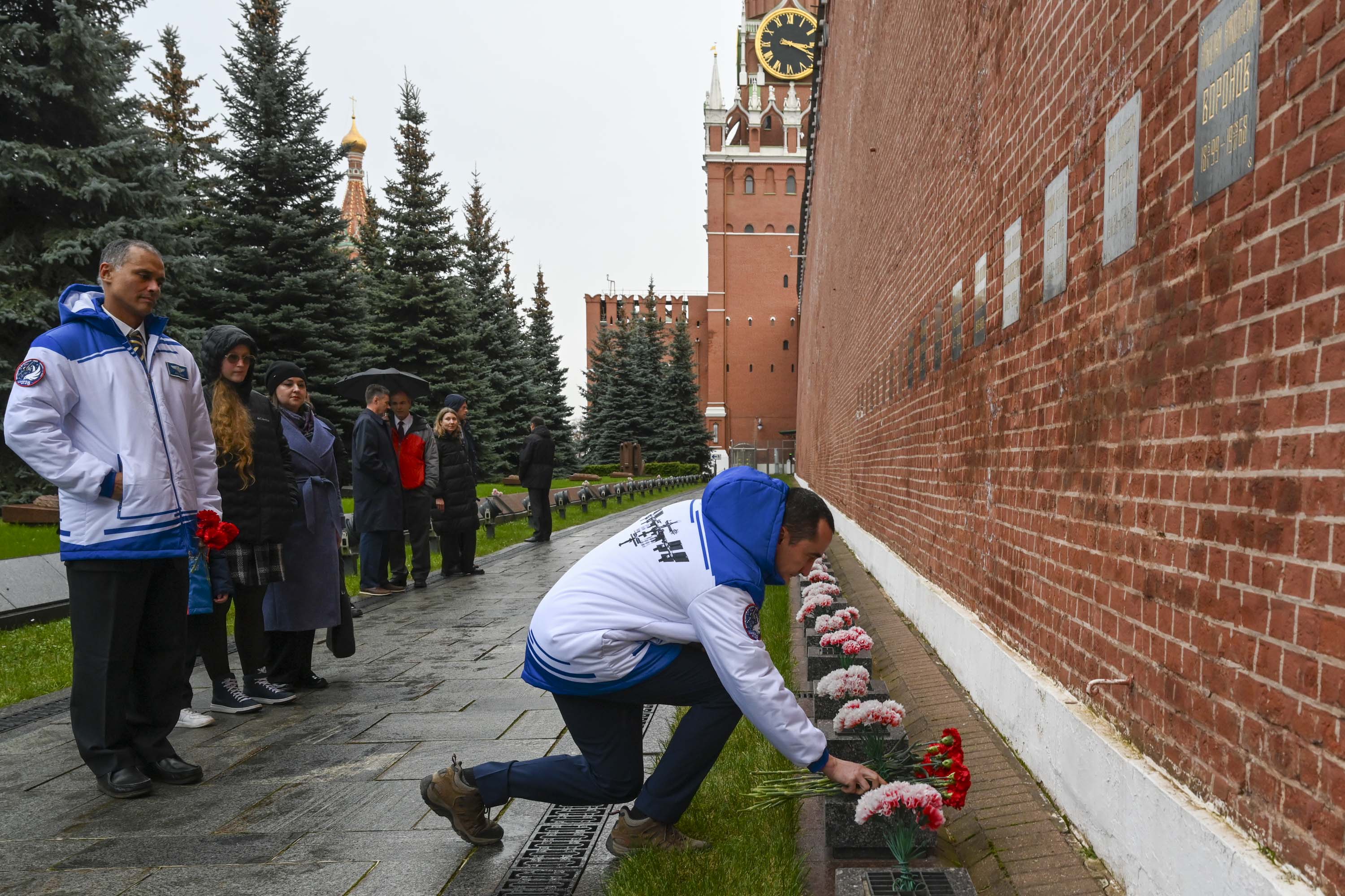 Далее основной и дублирующий экипажи, а также сопровождающие их работники ракетно-космической отрасли отправились в Москву. Делегация возложила цветы и почтила память Сергея Королёва, Юрия Гагарина и космонавтов, захороненных в некрополе у Кремлевской стены.