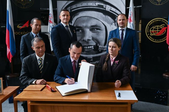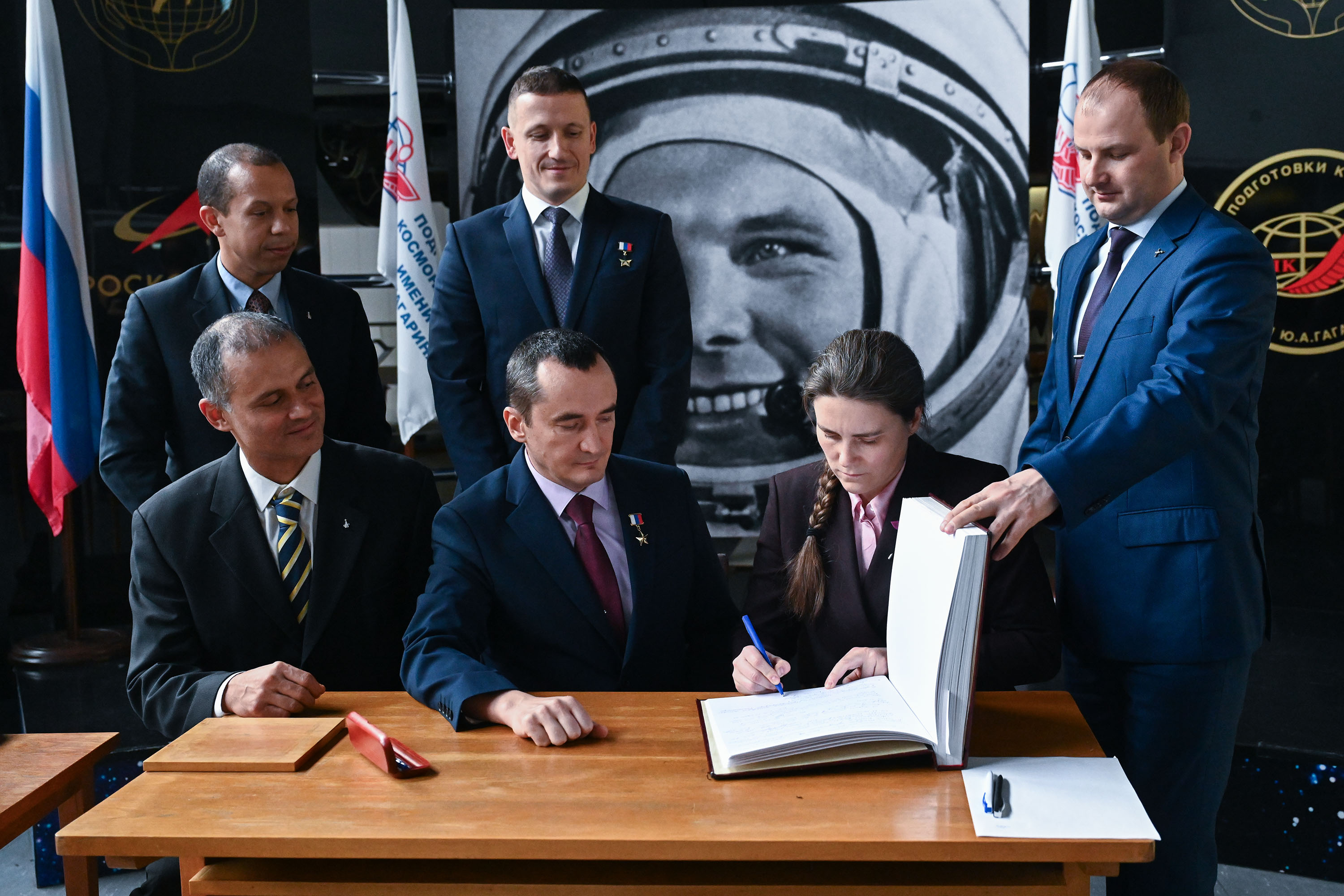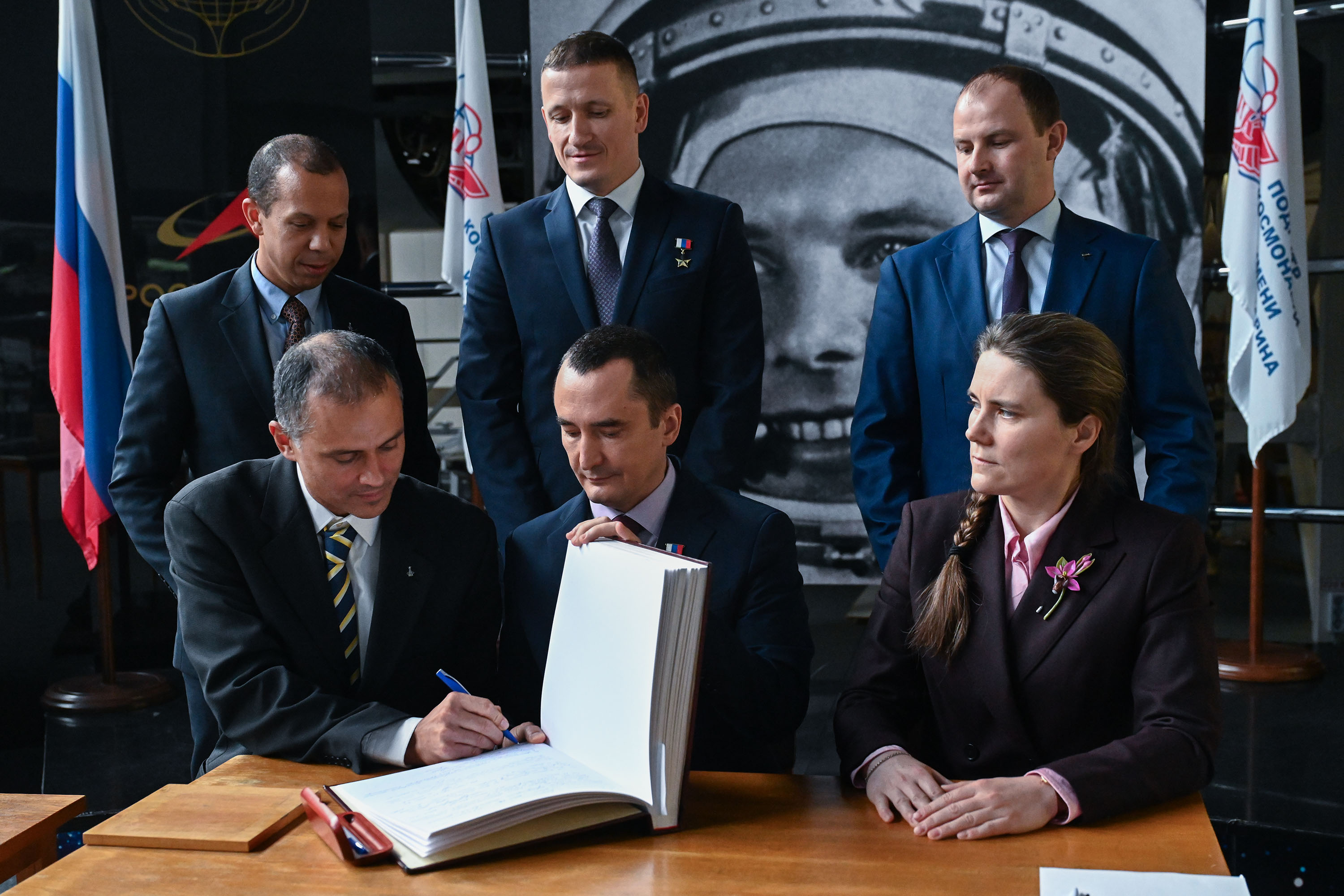 6 ноября 2025 года космонавты и астронавты побывали в Космоцентре, который находится в ЦПК. Там Сергей Кудь-Сверчков, Сергей Микаев, Пётр Дубров, Анна Кикина, а также Кристофер Уилльямс и Анил Менон оставили памятные записи в Книге предстартовых записей экипажей. Обычно эта церемония происходит в Мемориальном рабочем кабинете Юрия Гагарина, но музей Центра подготовки космонавтов сейчас находится на реконструкции. И его сотрудники постарались максимально воссоздать атмосферу этого значимого места с помощью мемориальной мебели из кабинета.