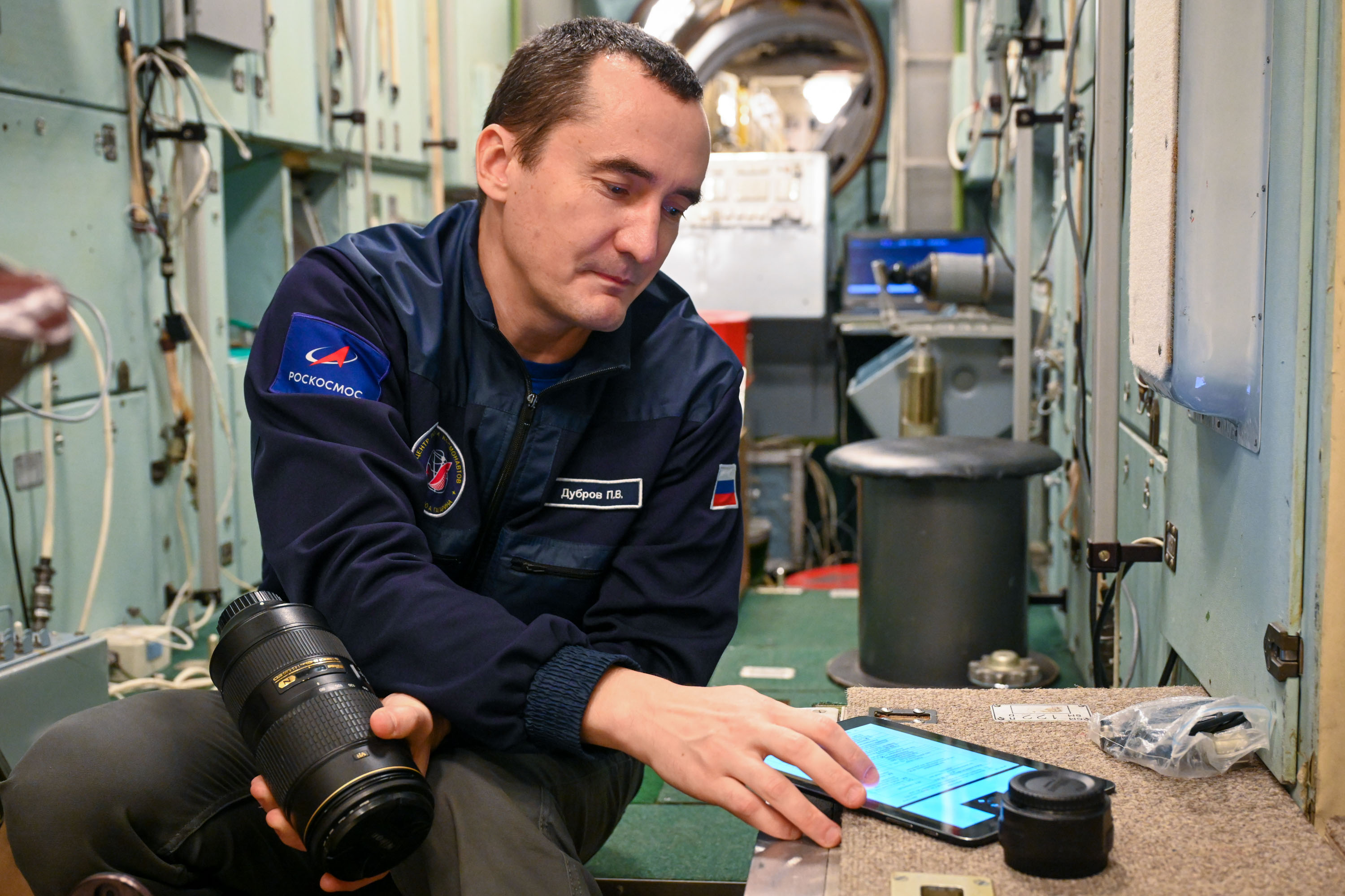 Как следует из названия КЭ, особое внимание уделяется наблюдениям за потенциально опасными и катастрофическими явлениями на нашей планете: ураганами, цунами, торнадо и т.д. Эту работу выполняют с помощью приборов, которые работают в различных областях электромагнитного излучения. Космонавты Роскосмоса Пётр Дубров и Анна Кикина на практическом занятии на тренажёрах российского сегмента МКС освежили навыки работы с цифровым фотооборудованием.