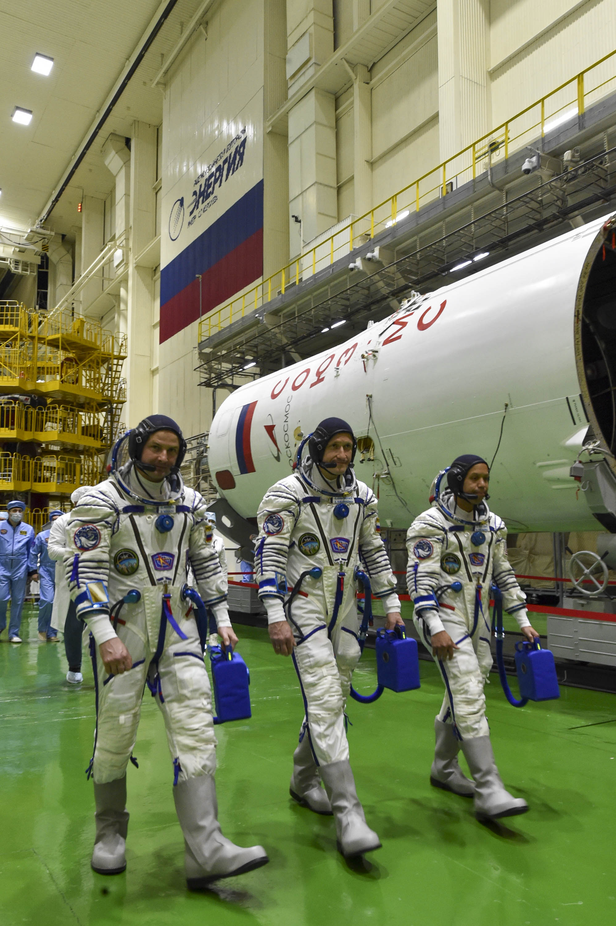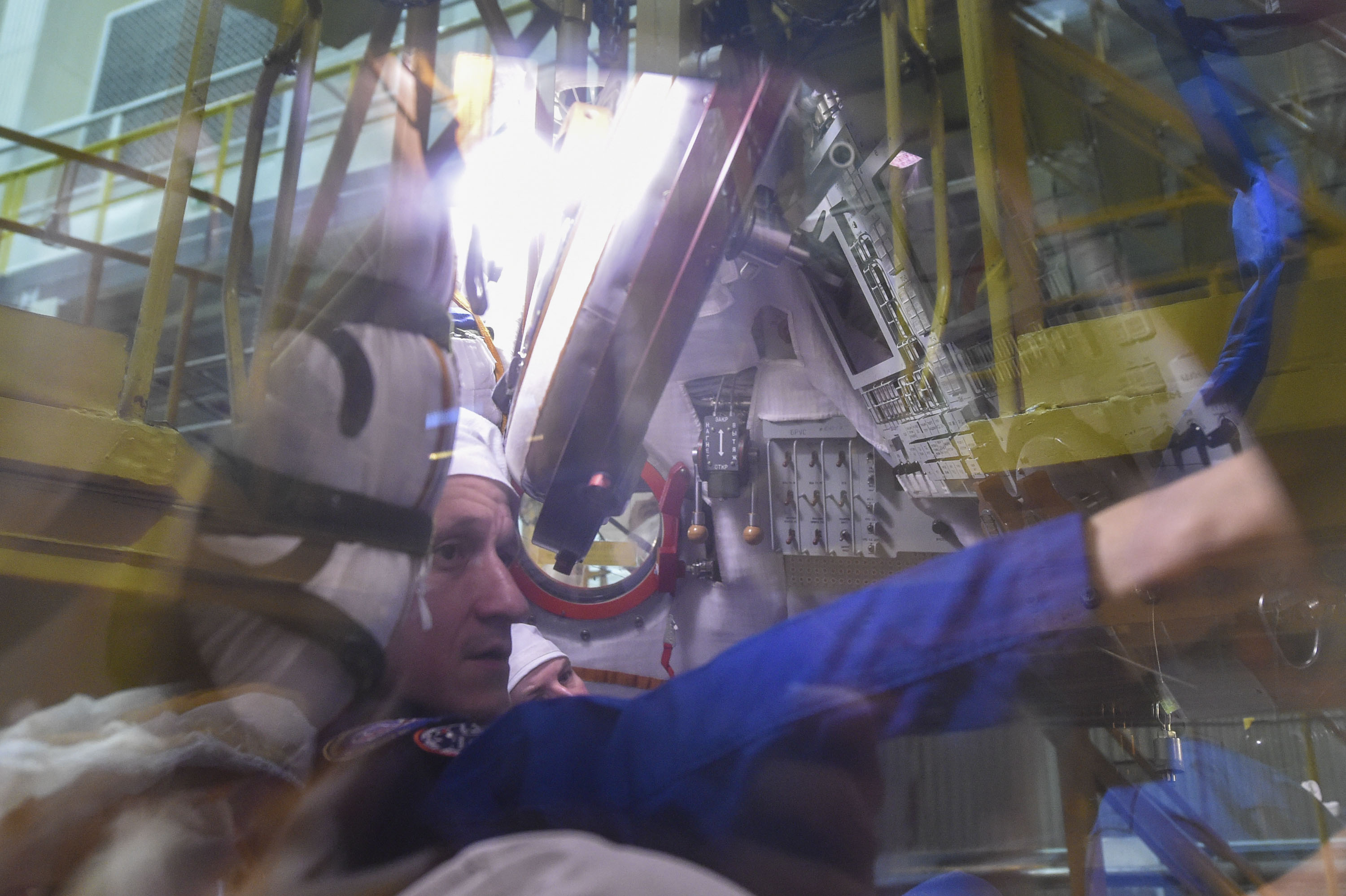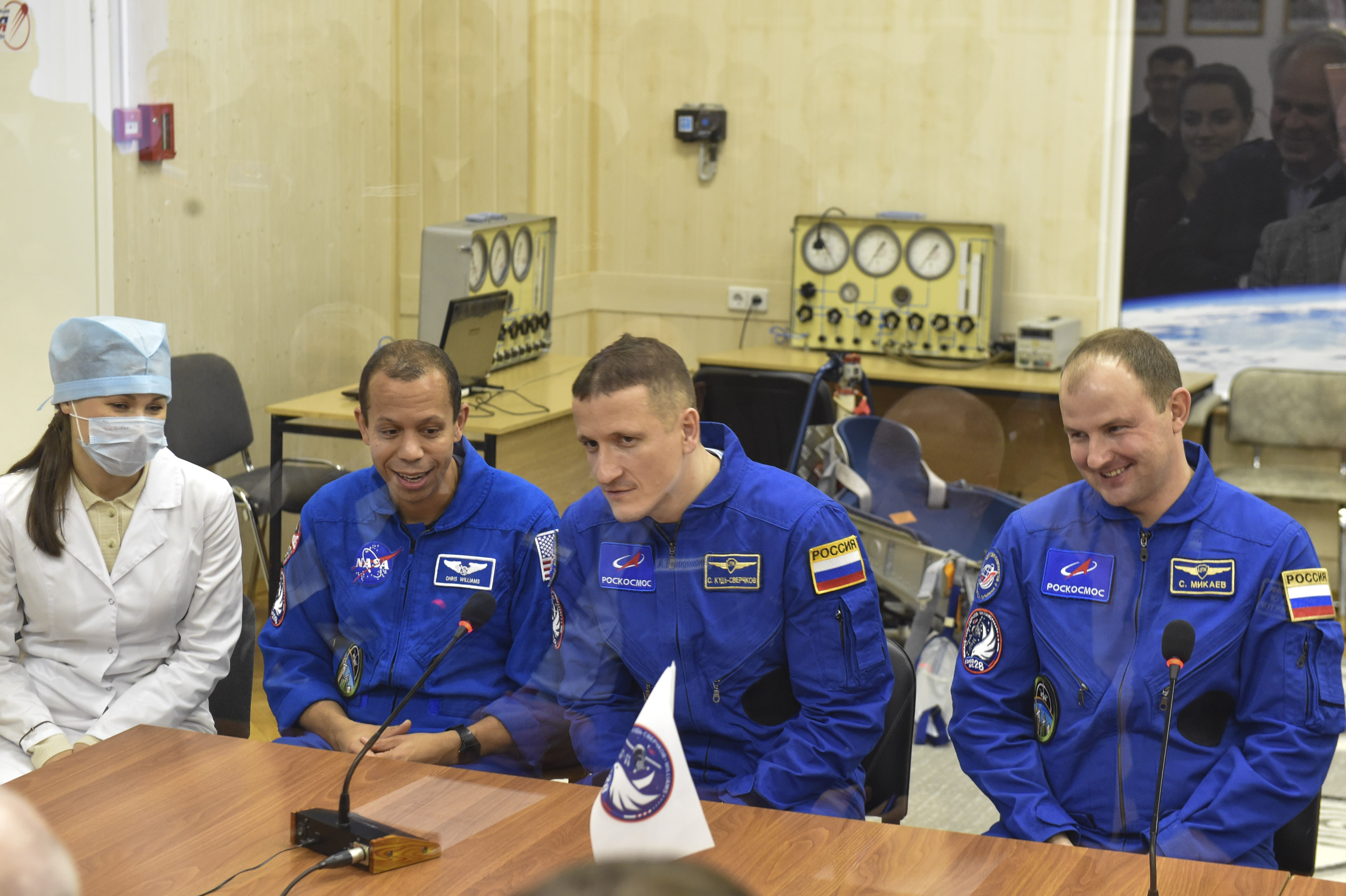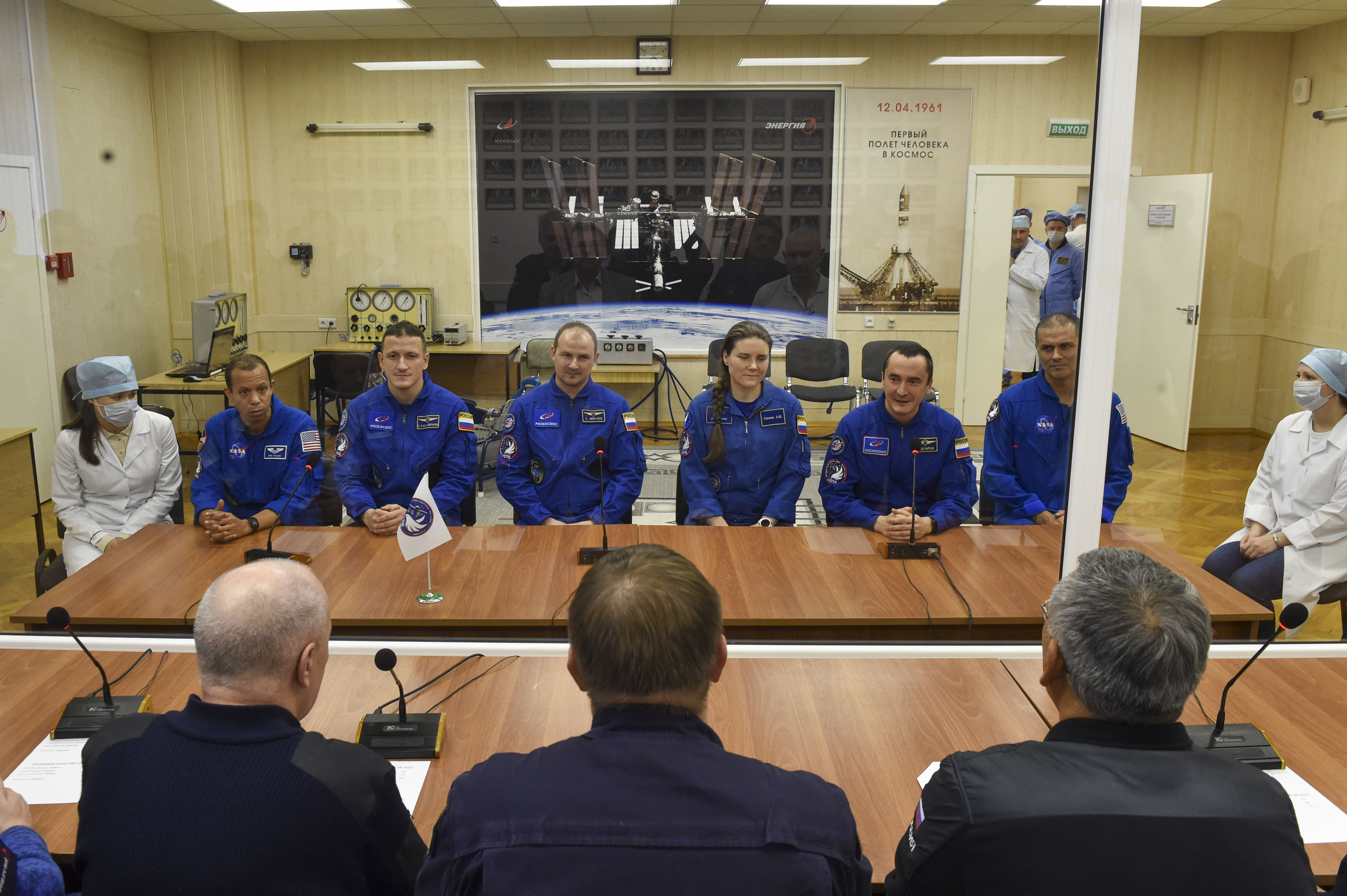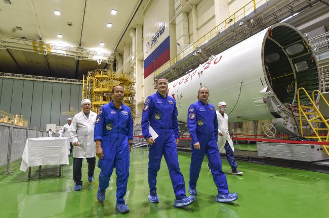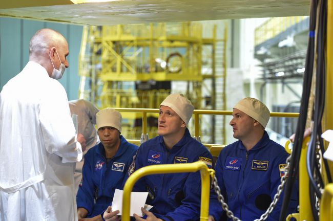 Кроме того, экипаж ознакомился с оборудованием, которое им предстоит доставить на борт, в так называемой «чистой» комнате. Через несколько дней, ко времени второй примерки. оно займёт своё место внутри корабля.