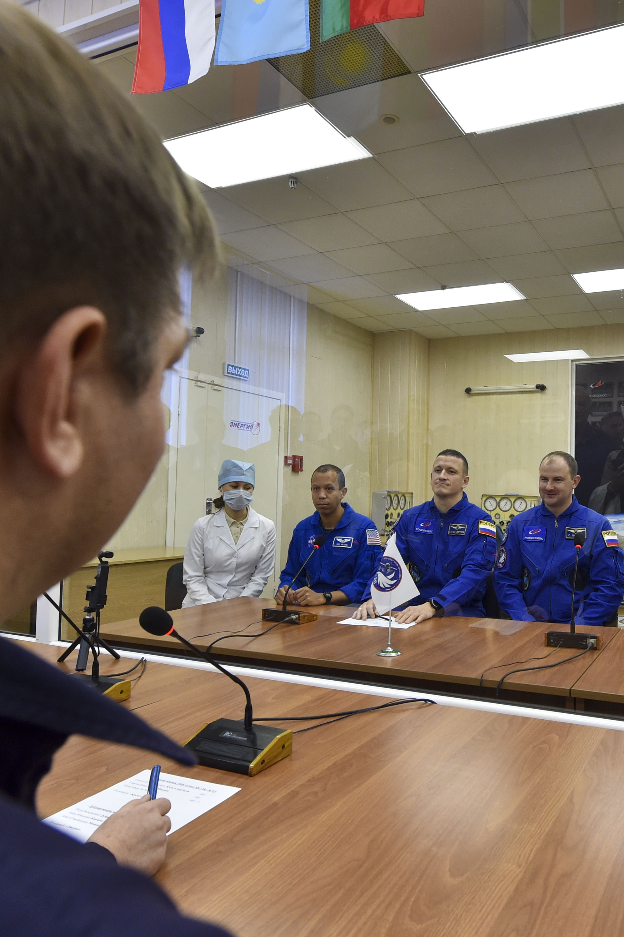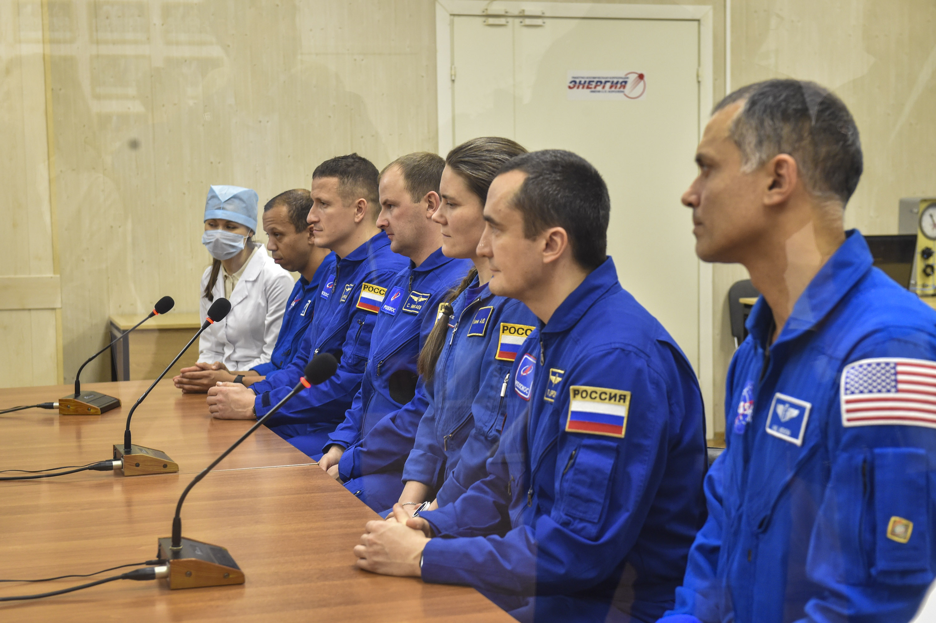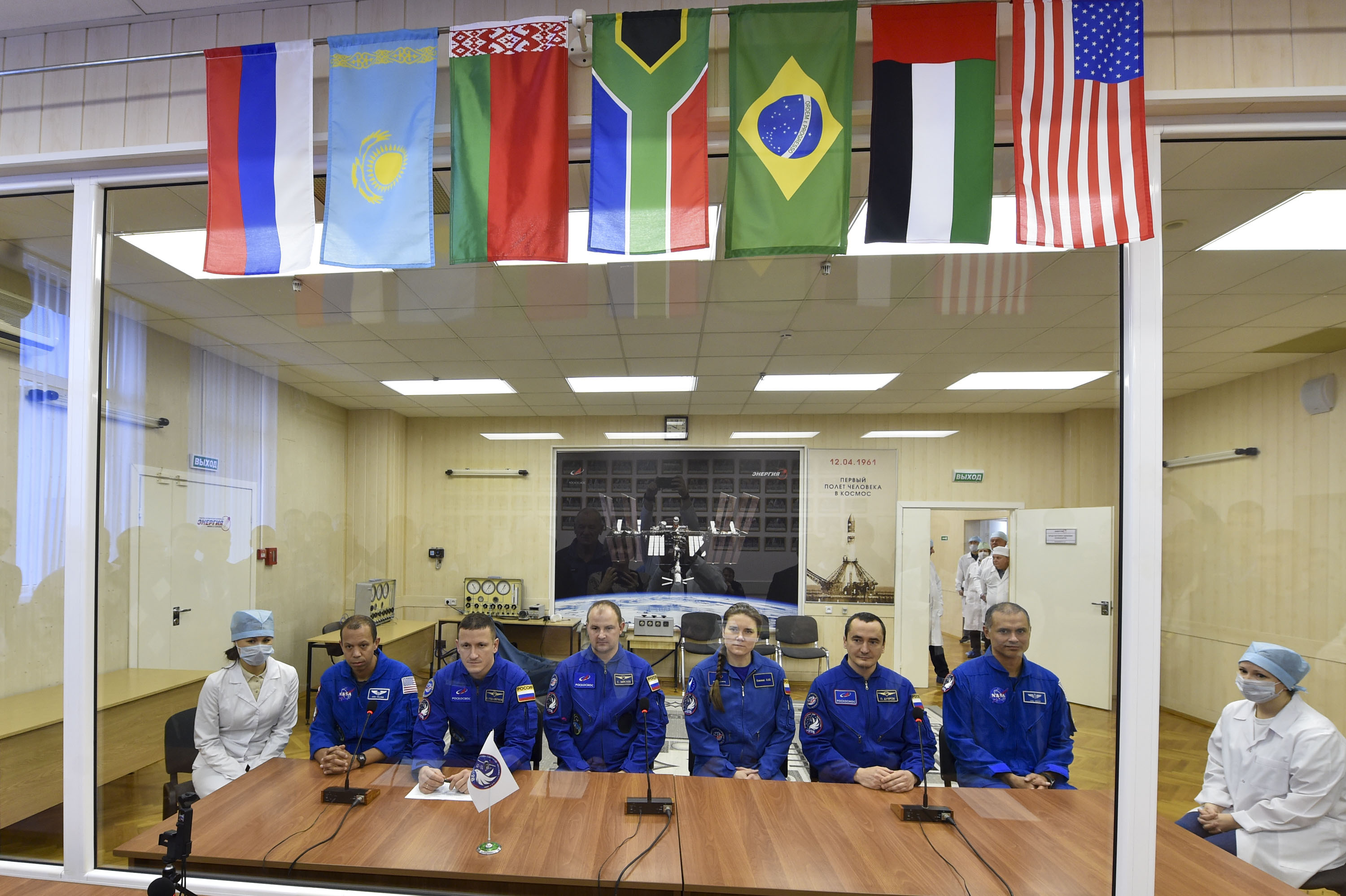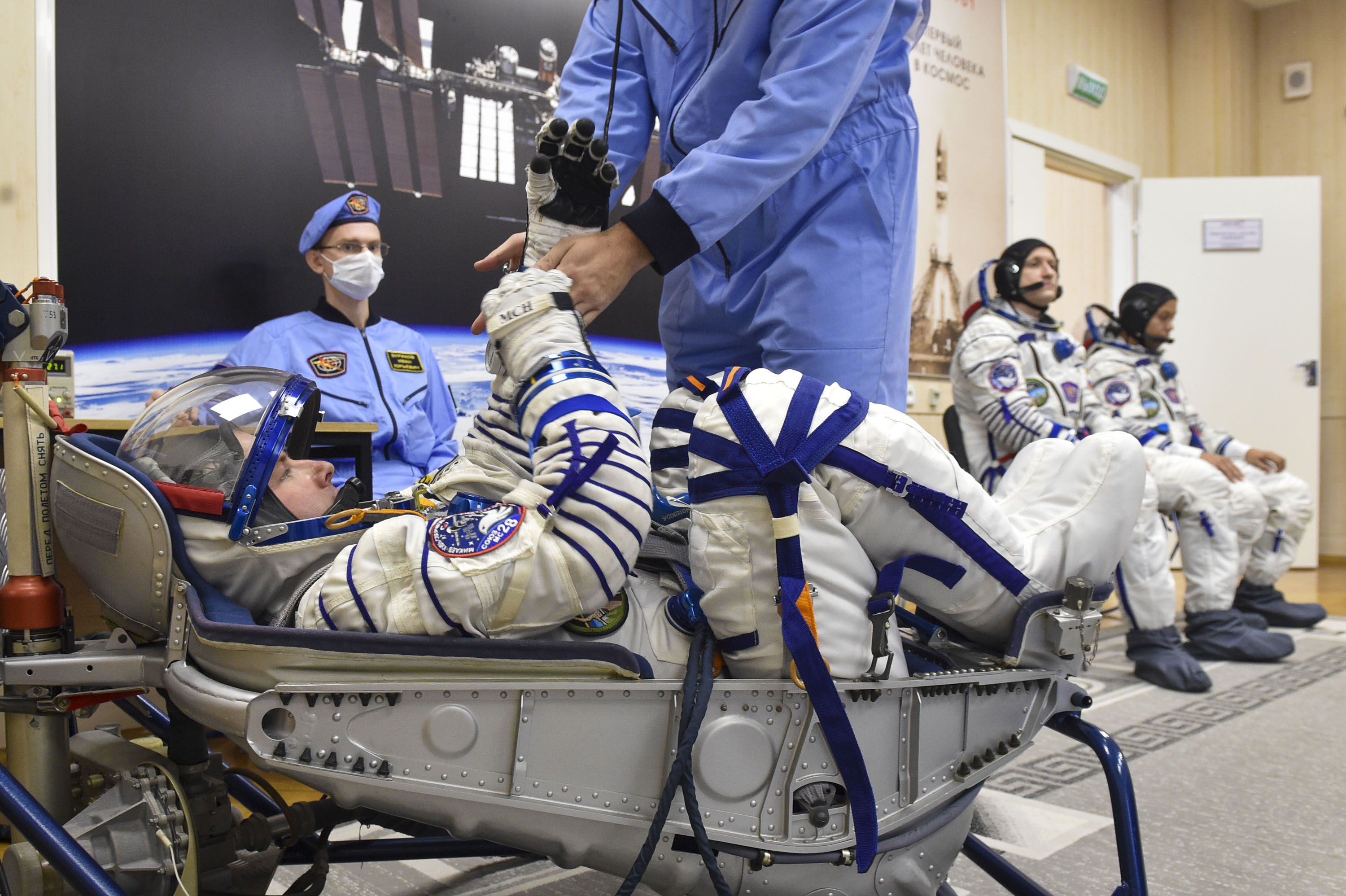 Кроме того, экипаж ознакомился с оборудованием, которое им предстоит доставить на борт, в так называемой «чистой» комнате. Через несколько дней, ко времени второй примерки. оно займёт своё место внутри корабля.