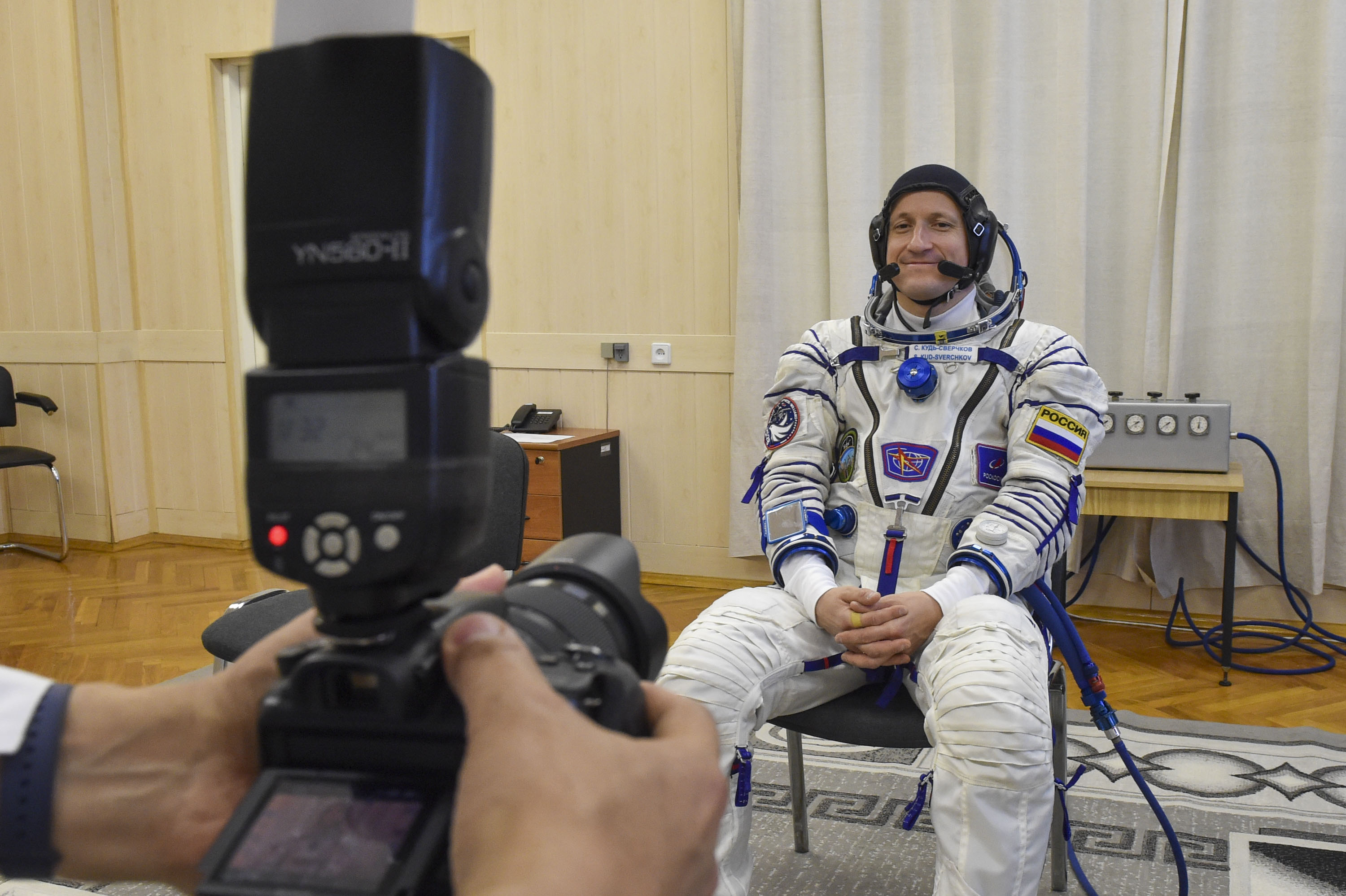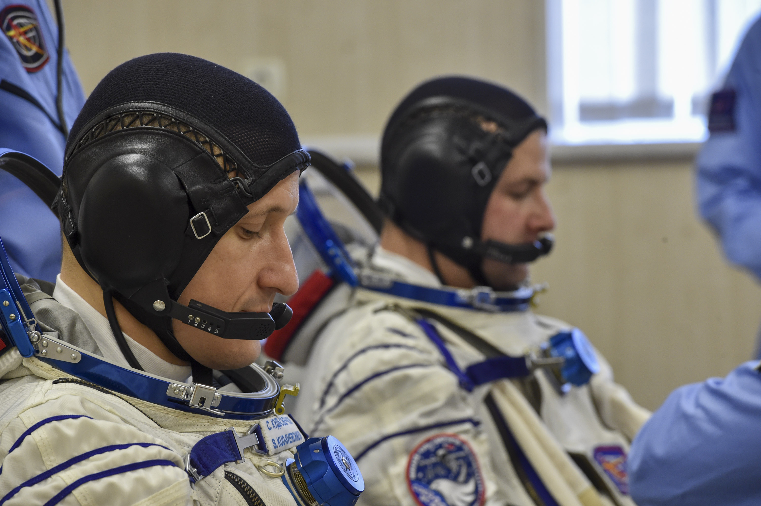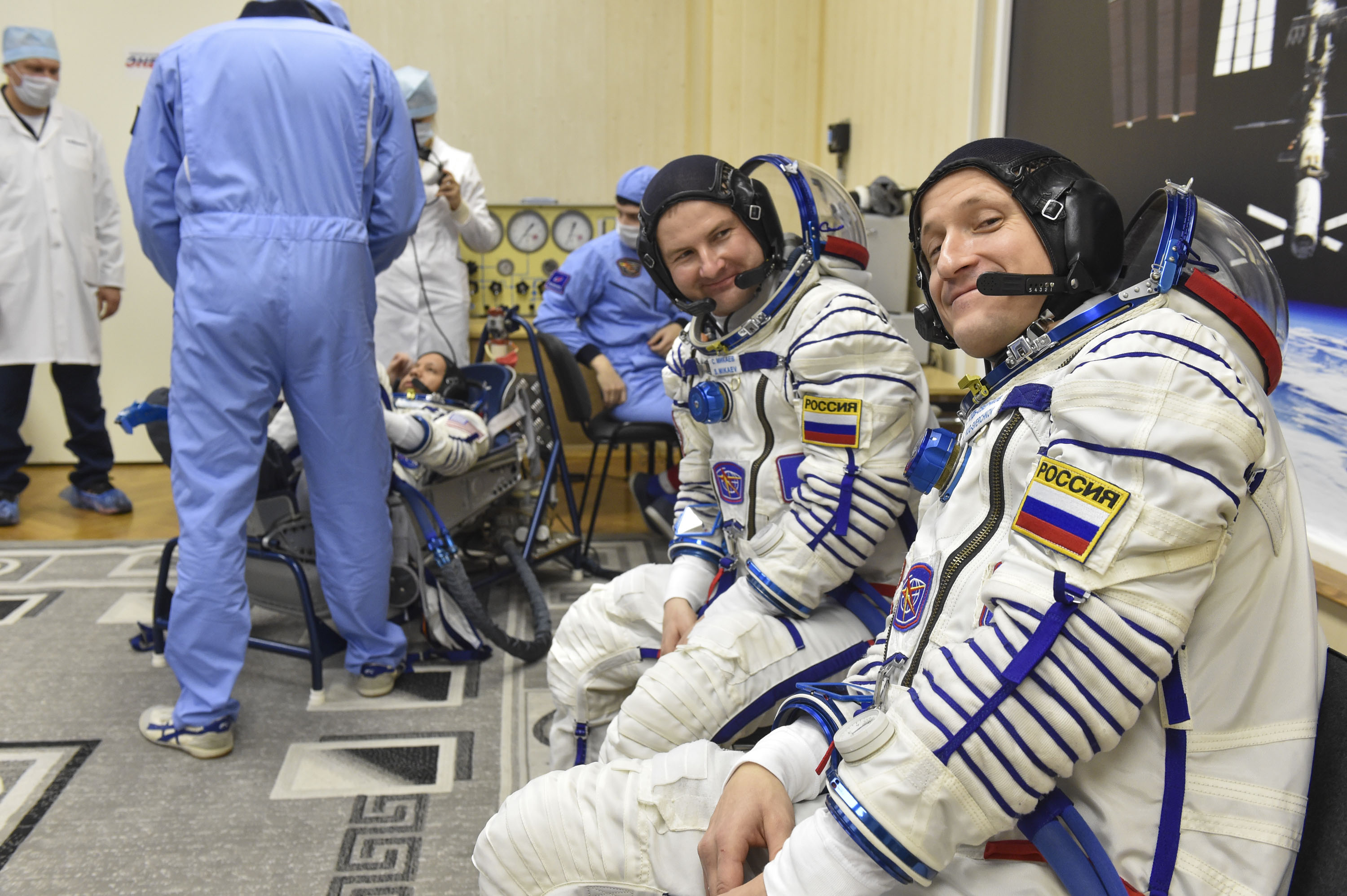 «Во время первой примерки мы проводим осмотр корабля и проверяем, чтобы все его элементы и необходимые грузы находились на своих местах. Также обращаем внимание на эргономику, чтобы нам было удобно, связь, конфигурацию кресел. Много осмотров, которые касаются непосредственно оборудования и грузов. Проводим их как в скафандрах, так и в полётных комбинезонах для того, чтобы понимать, комфортно ли нам будет работать на старте», - пояснил Сергей Кудь-Сверчков.