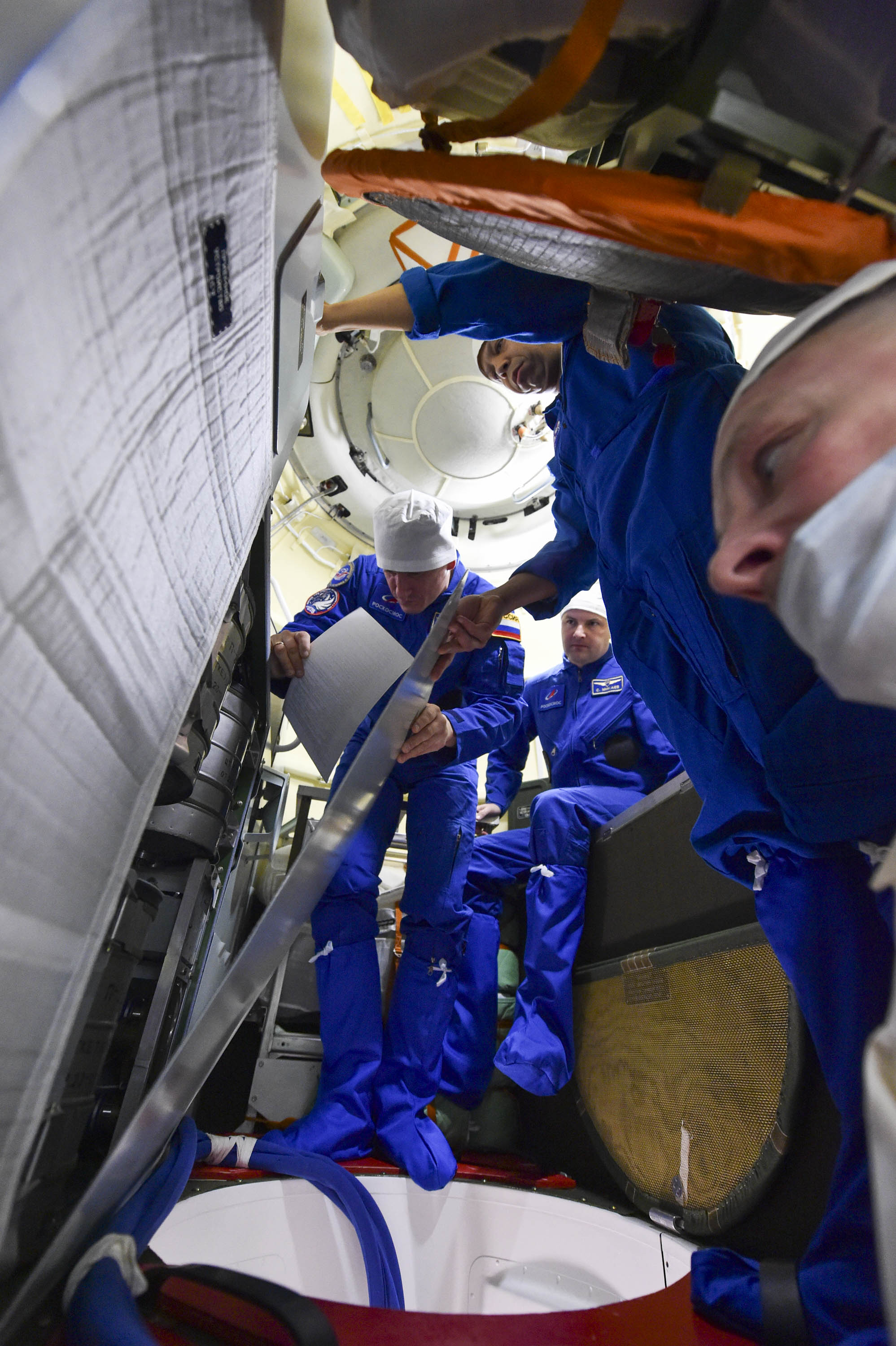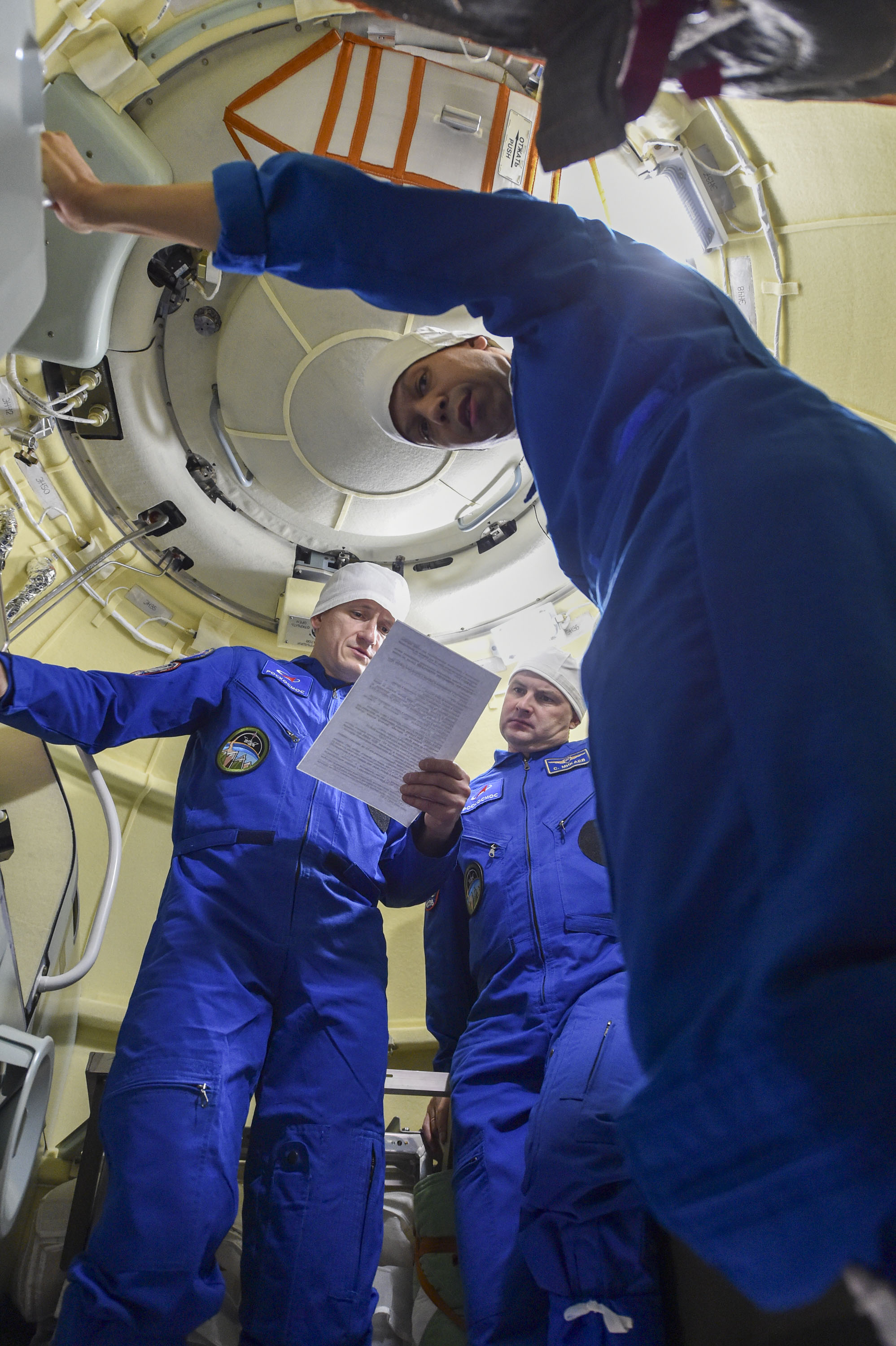 Под контролем специалистов космодрома «Байконур» экипажи ознакомились с местами размещения грузов в бытовом отсеке и спускаемом аппарате, выполнили работу с оборудованием, с которым им предстоит трудиться в космосе, и другие предусмотренные планом тренировки действия. При этом часть операций космонавты и астронавты отработали в скафандрах.