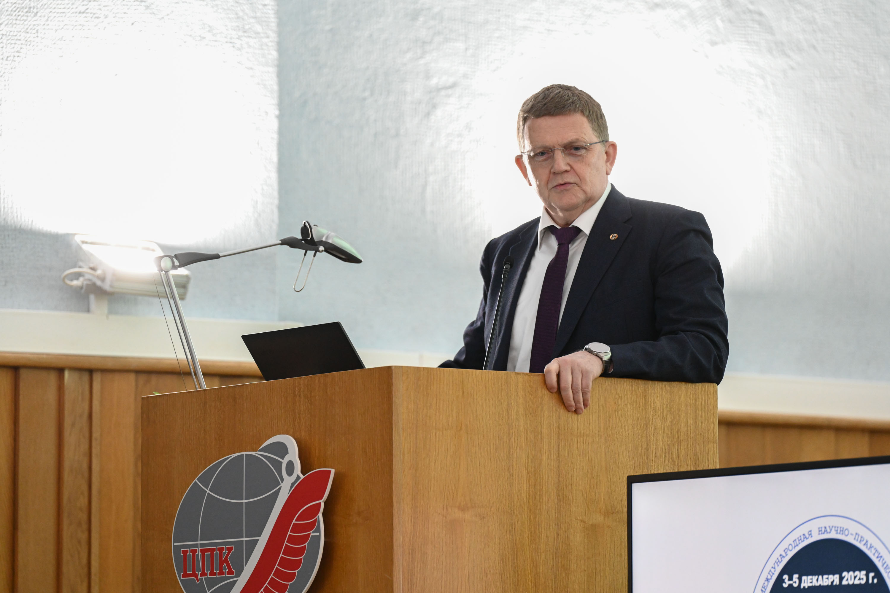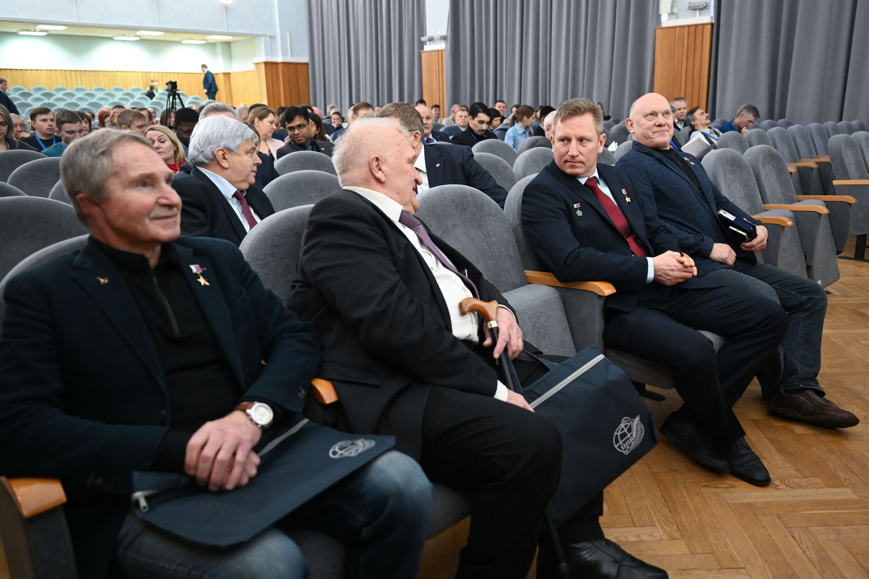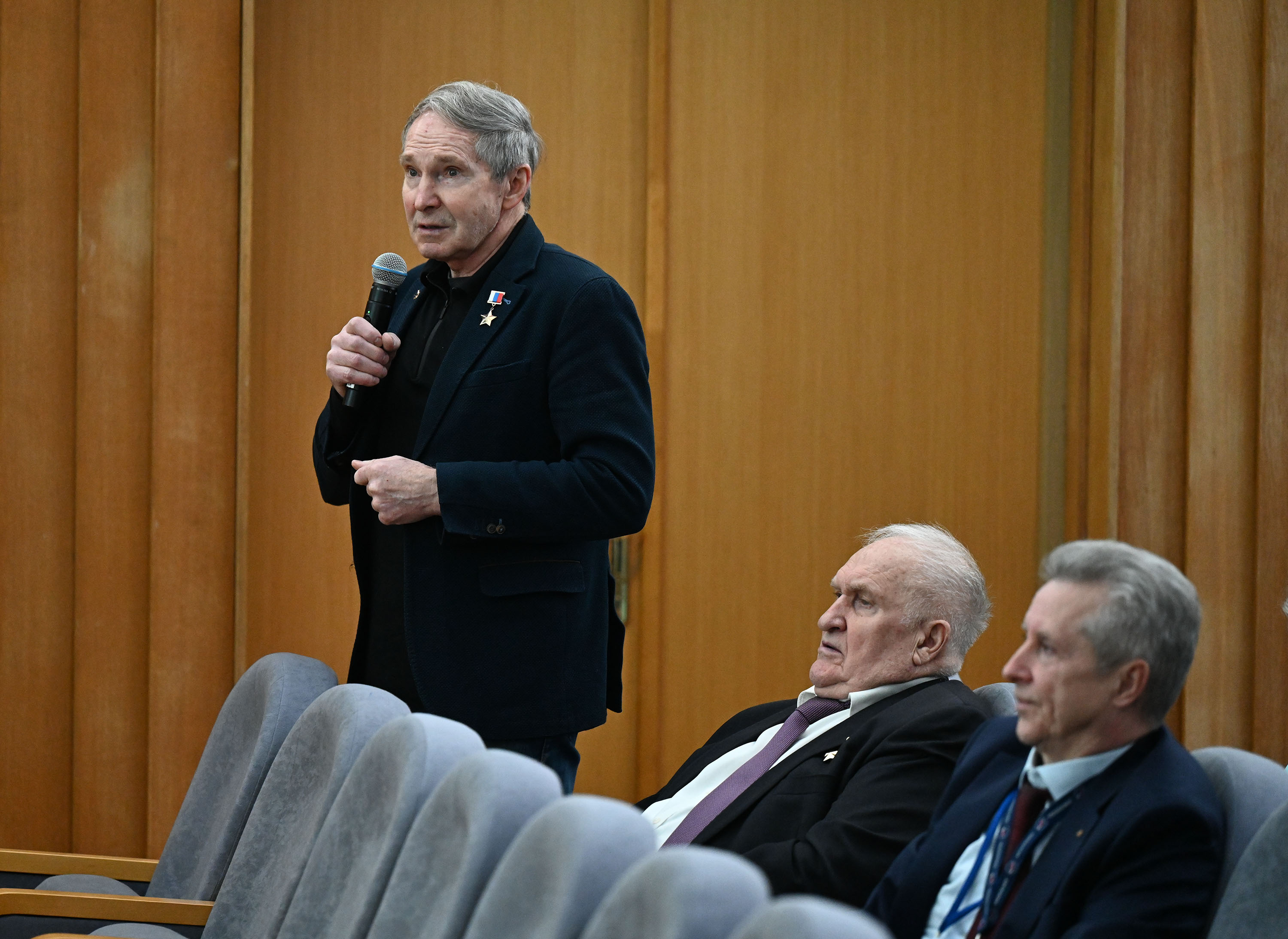 На пленарном заседании с докладом о целевом использовании пилотируемого космического комплекса выступил дважды Герой Советского Союза, летчик-космонавт СССР, академик РАН, генеральный конструктор – заместитель генерального директора, генеральный конструктор по пилотируемым космическим системам и комплексам ПАО «РКК «Энергия» имени С.П. Королёва» Владимир Алексеевич Соловьев.