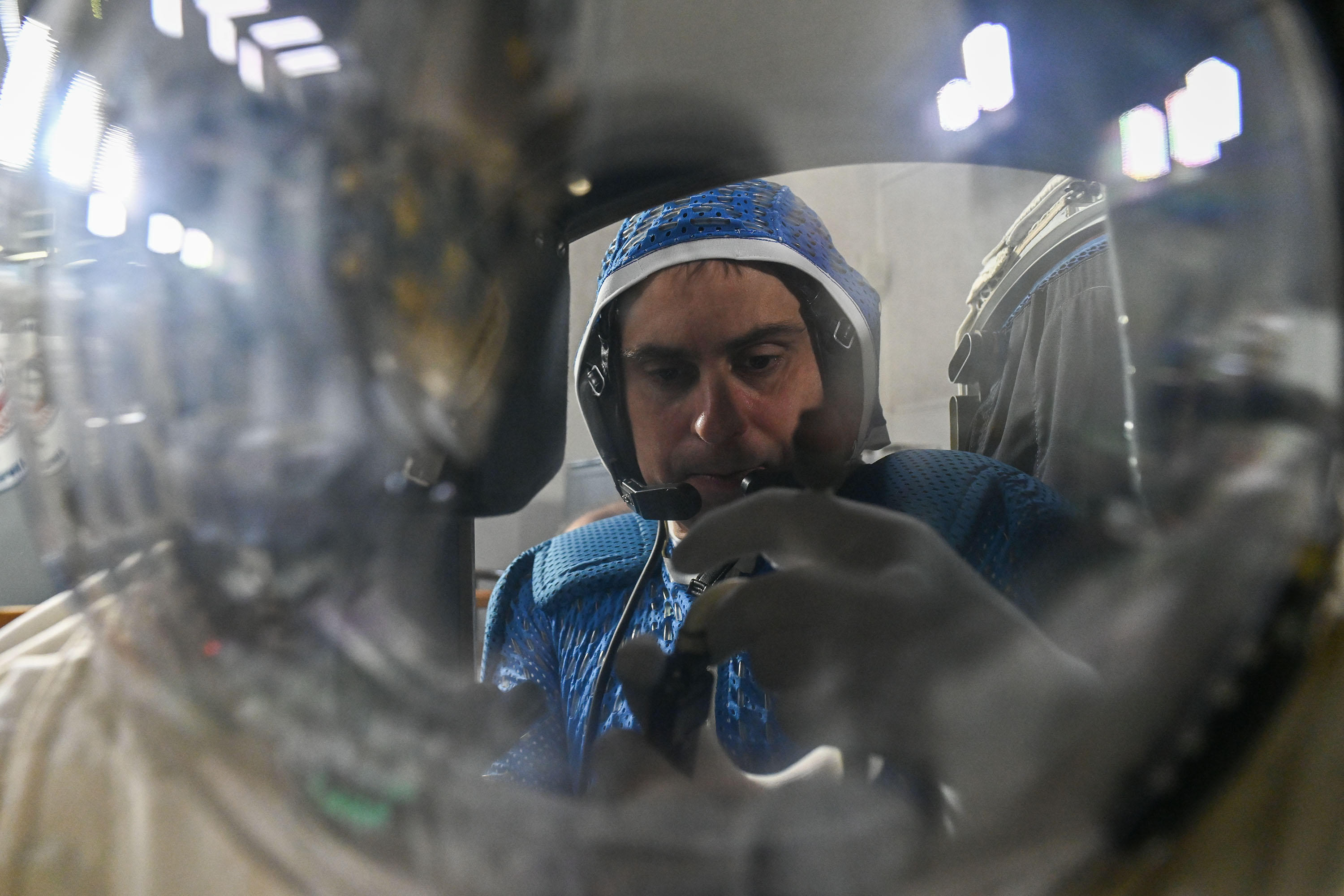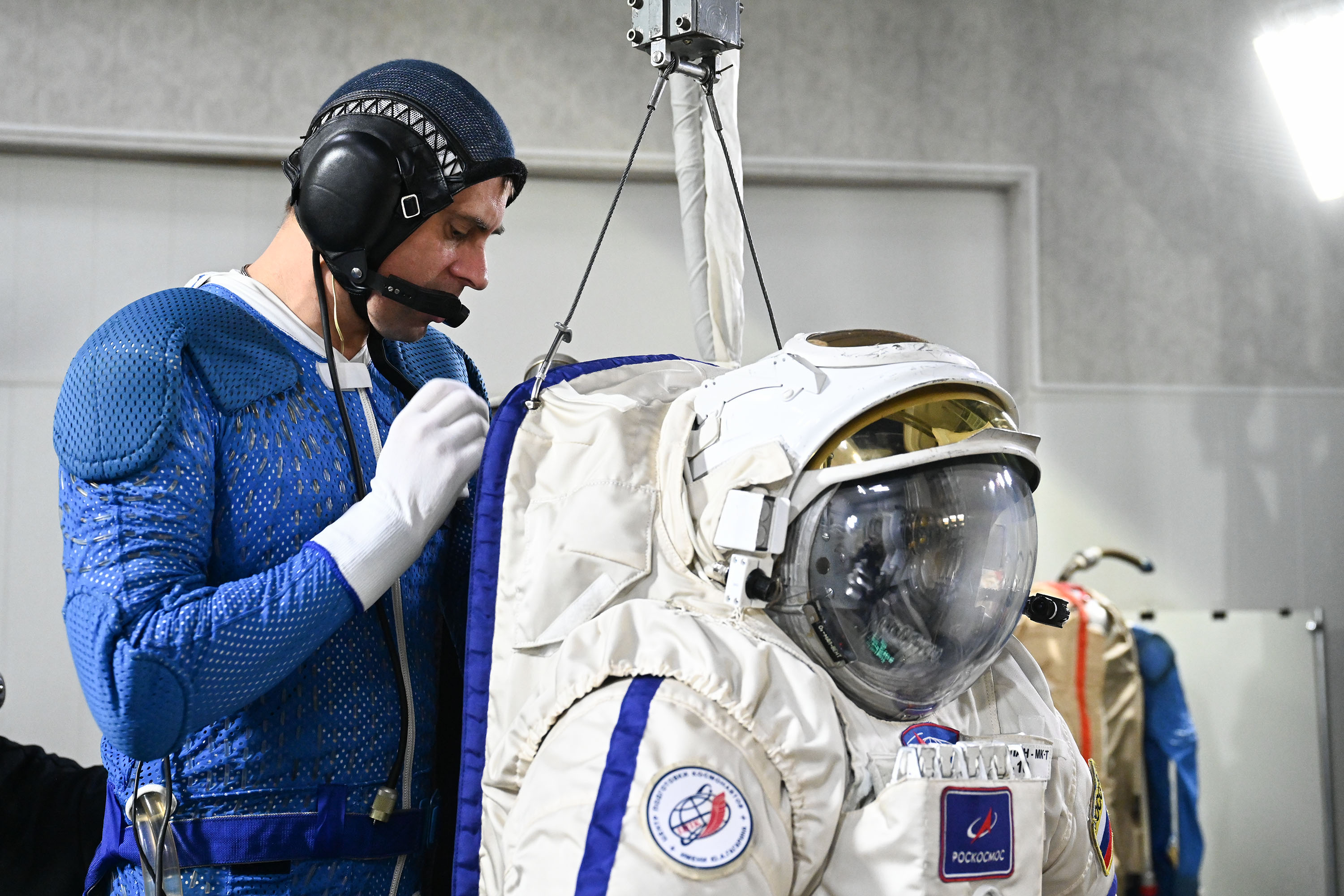 Зачётная тренировка космонавта Роскосмоса Андрея Федяева на тренажёре «Выход-2» является финалом всей подготовки по двум дисциплинам – «Скафандр для внекорабельной деятельности» и «Комплекс средств шлюзования». Отработка этих навыков необходима для работы в открытом космосе.