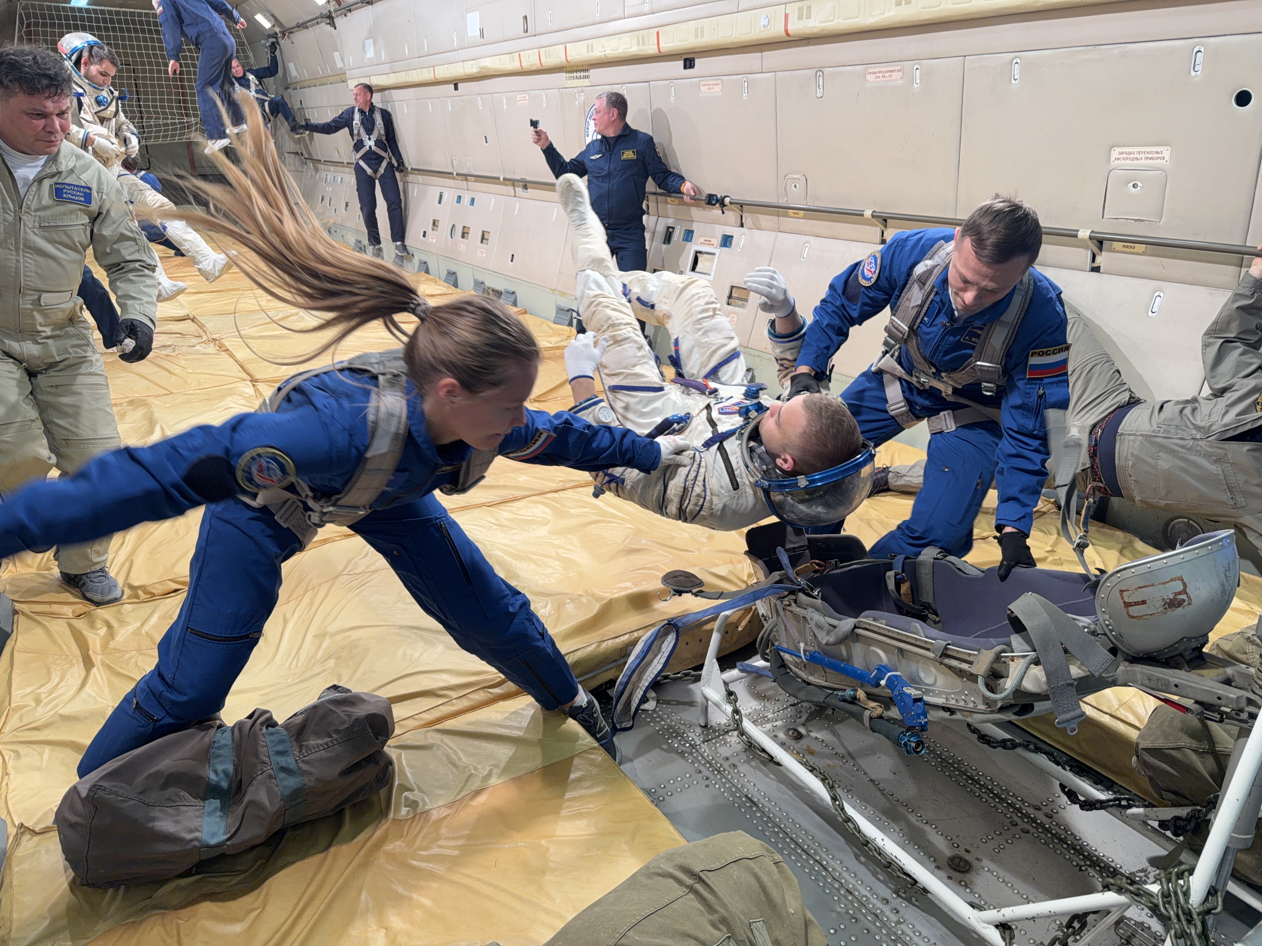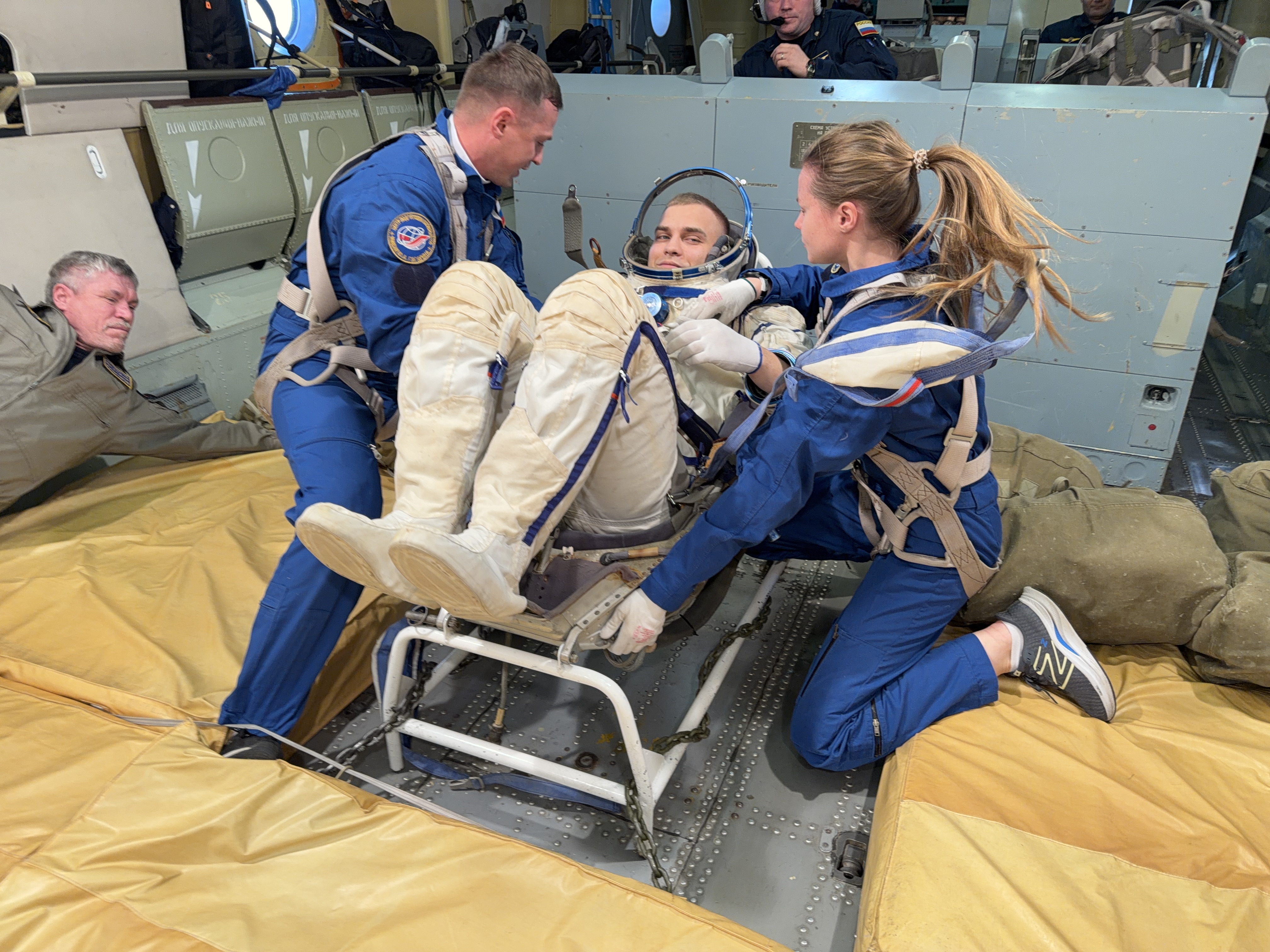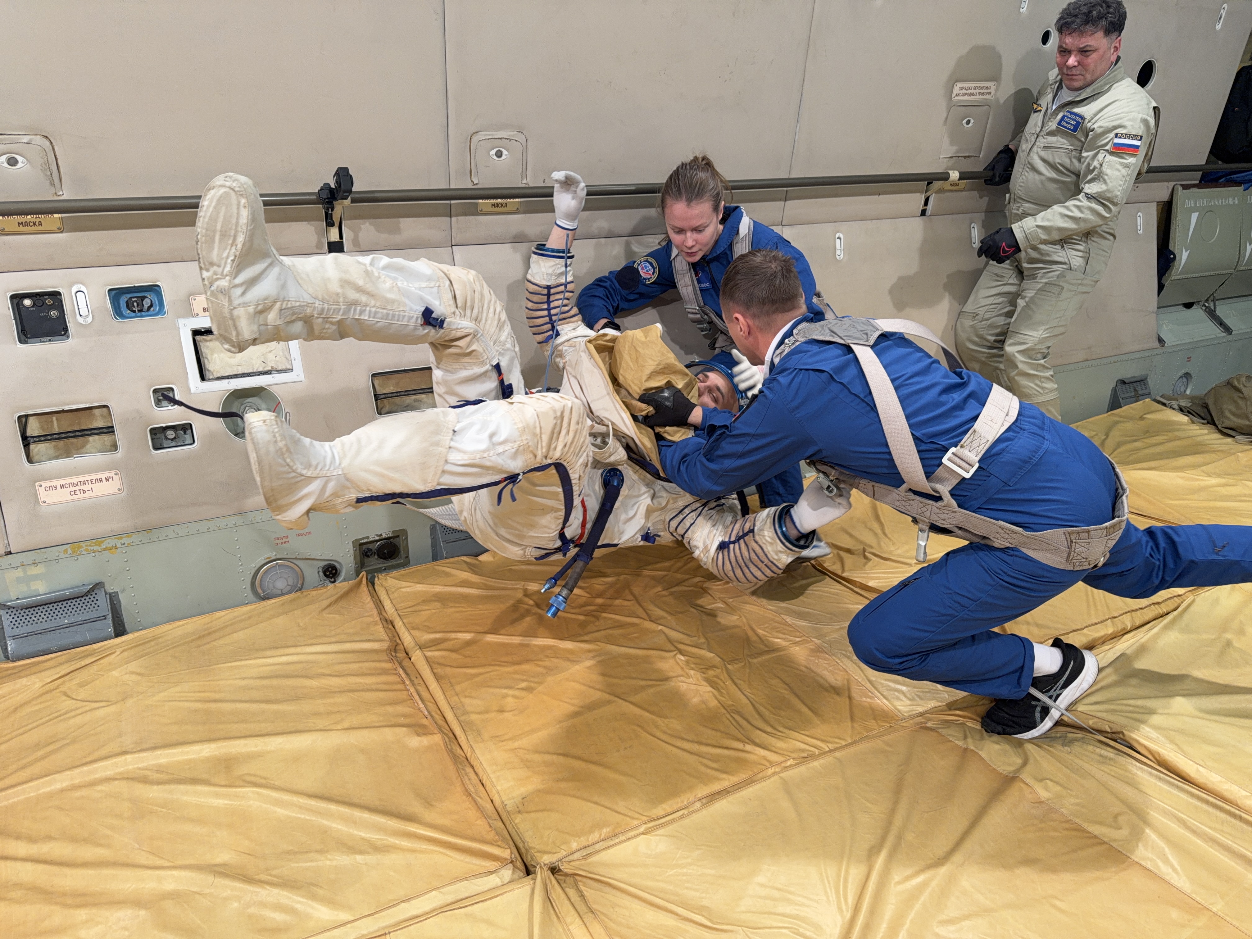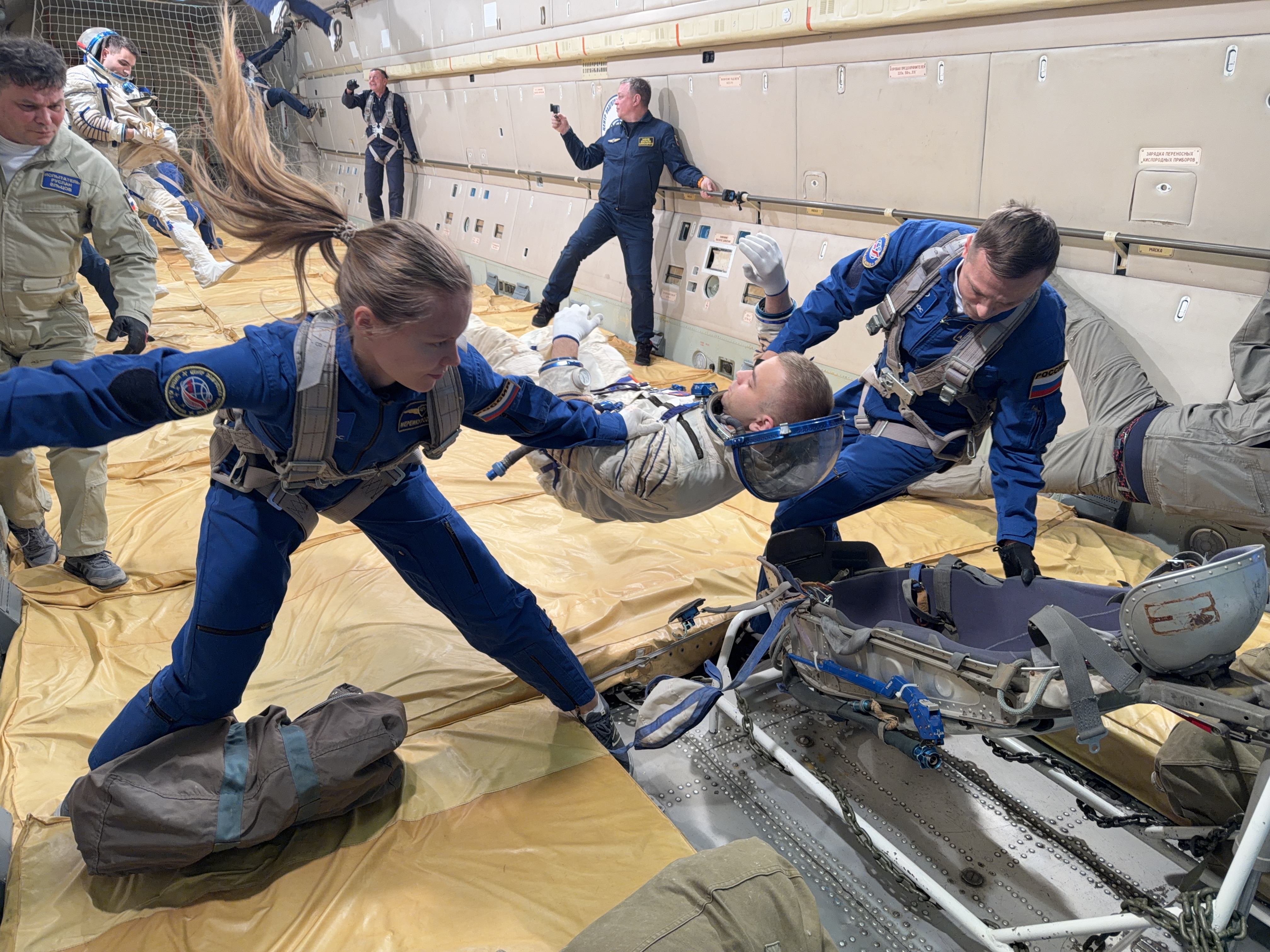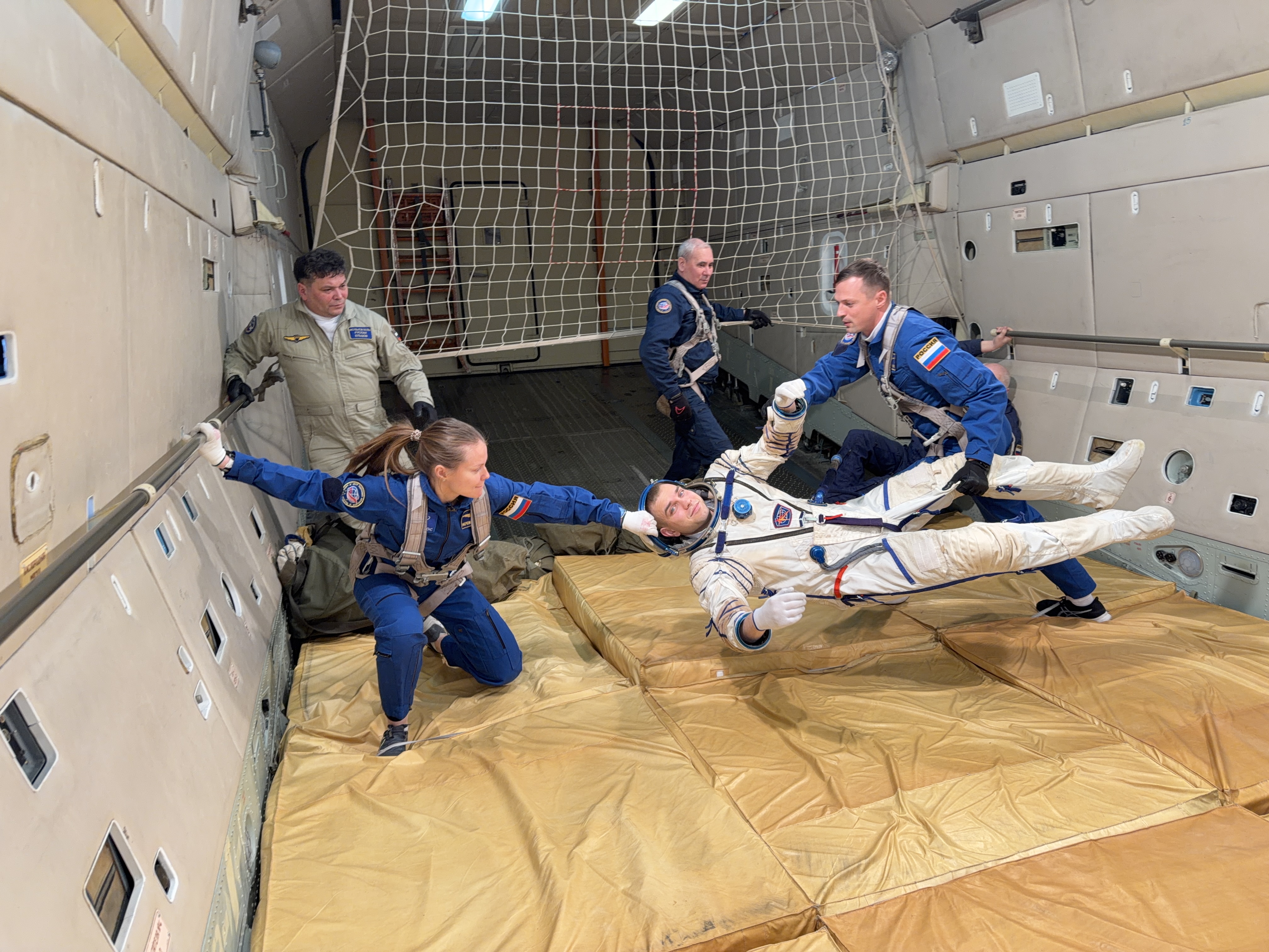 Группа общекосмической подготовки – Анастасия Меремкулова, Эльчин Вахидов, Владимир Ворожко и Александр Жеребцов – завершила цикл подготовки на борту самолёта-лаборатории Ил‑76МДК (модифицированный дальний космический). Это – уникальный имитатор условий невесомости, специально созданный для выполнения полётов с воспроизведением режимов невесомости.