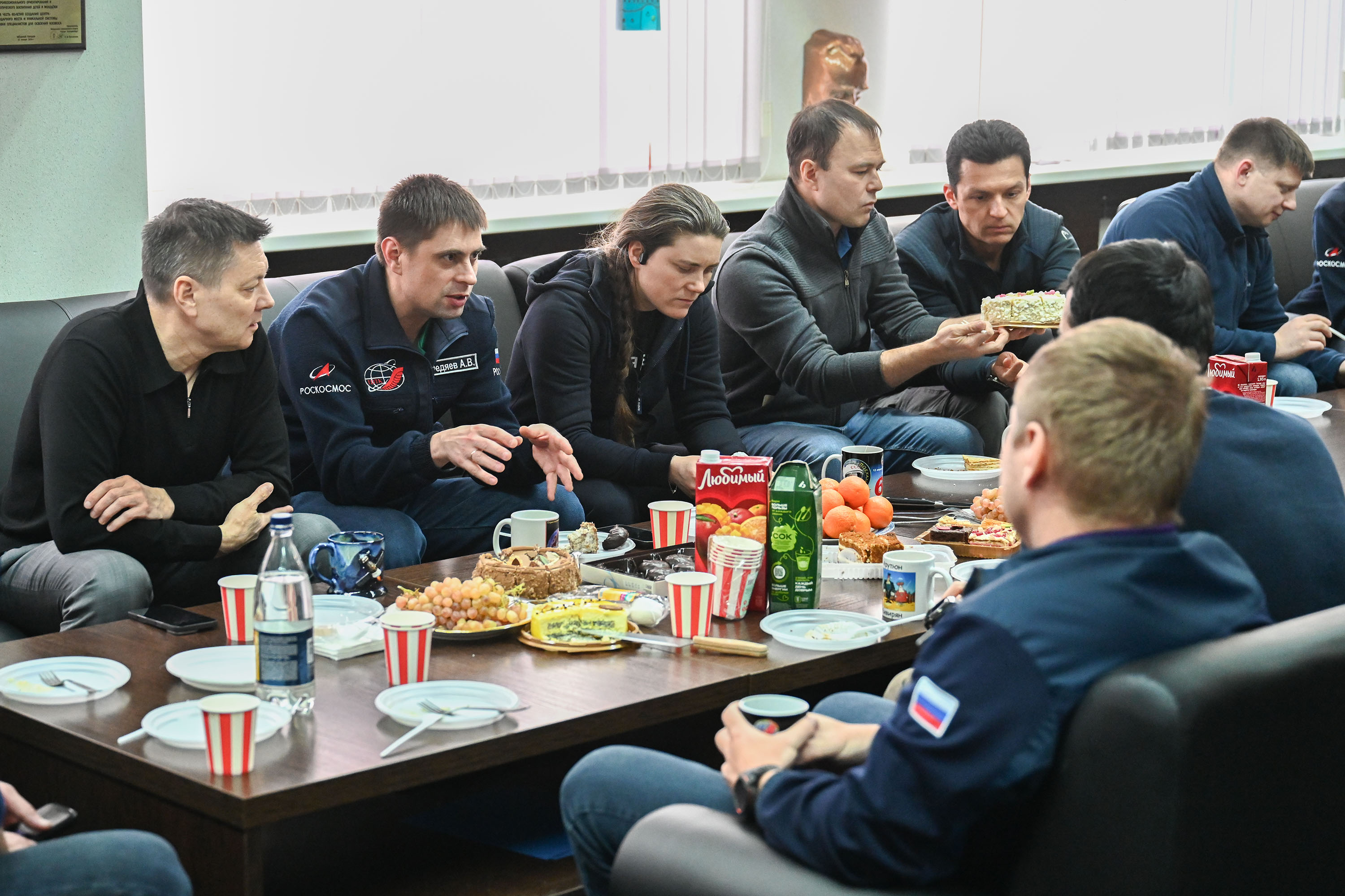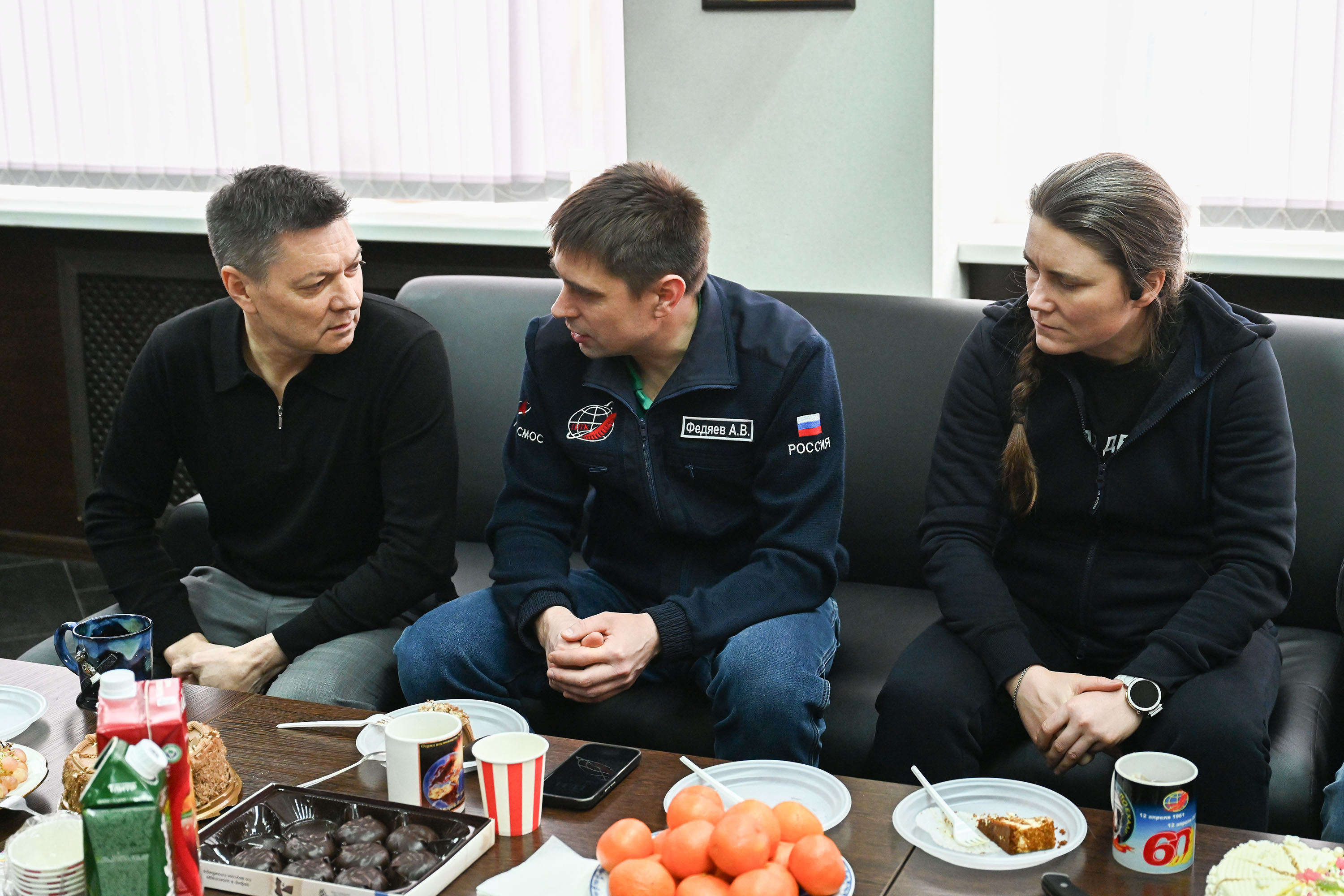 Сегодня космонавт встретился со своими товарищами по отряду во время традиционного чаепития. Герой России, лётчик-космонавт РФ, и.о. начальника Центра, командир отряда космонавтов Олег Кононенко пожелал Андрею Федяеву удачного полёта, достижения поставленных целей и как можно меньше нештатных ситуаций на борту станции.