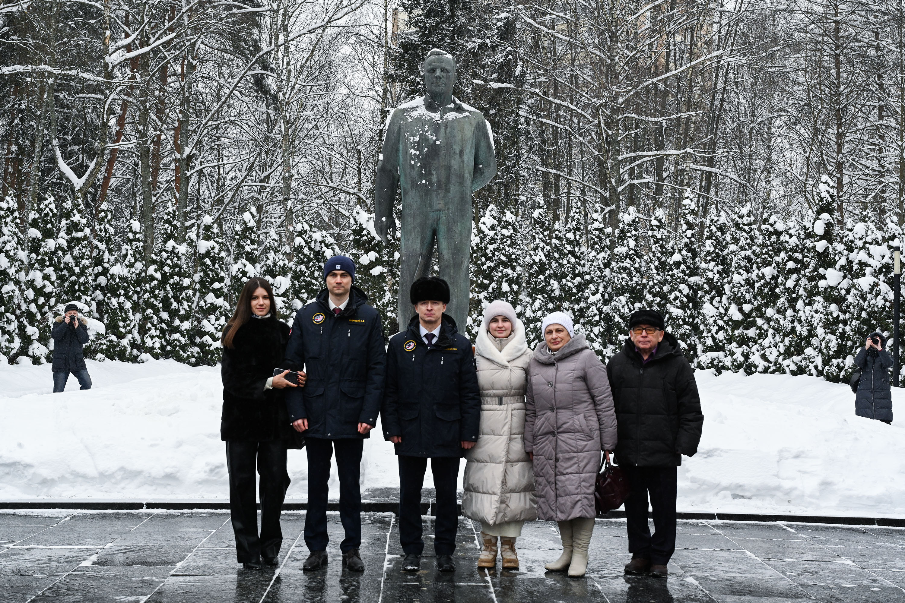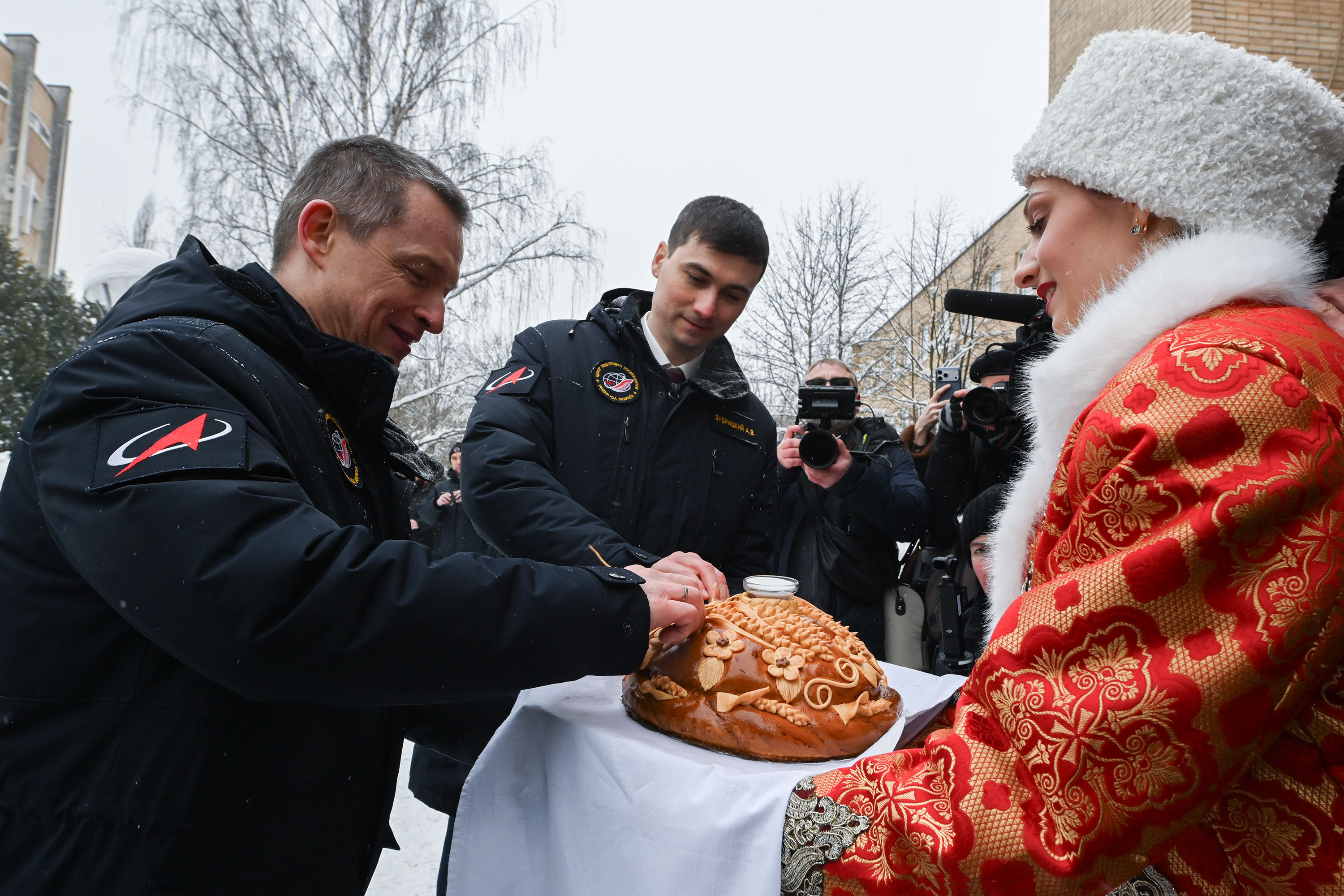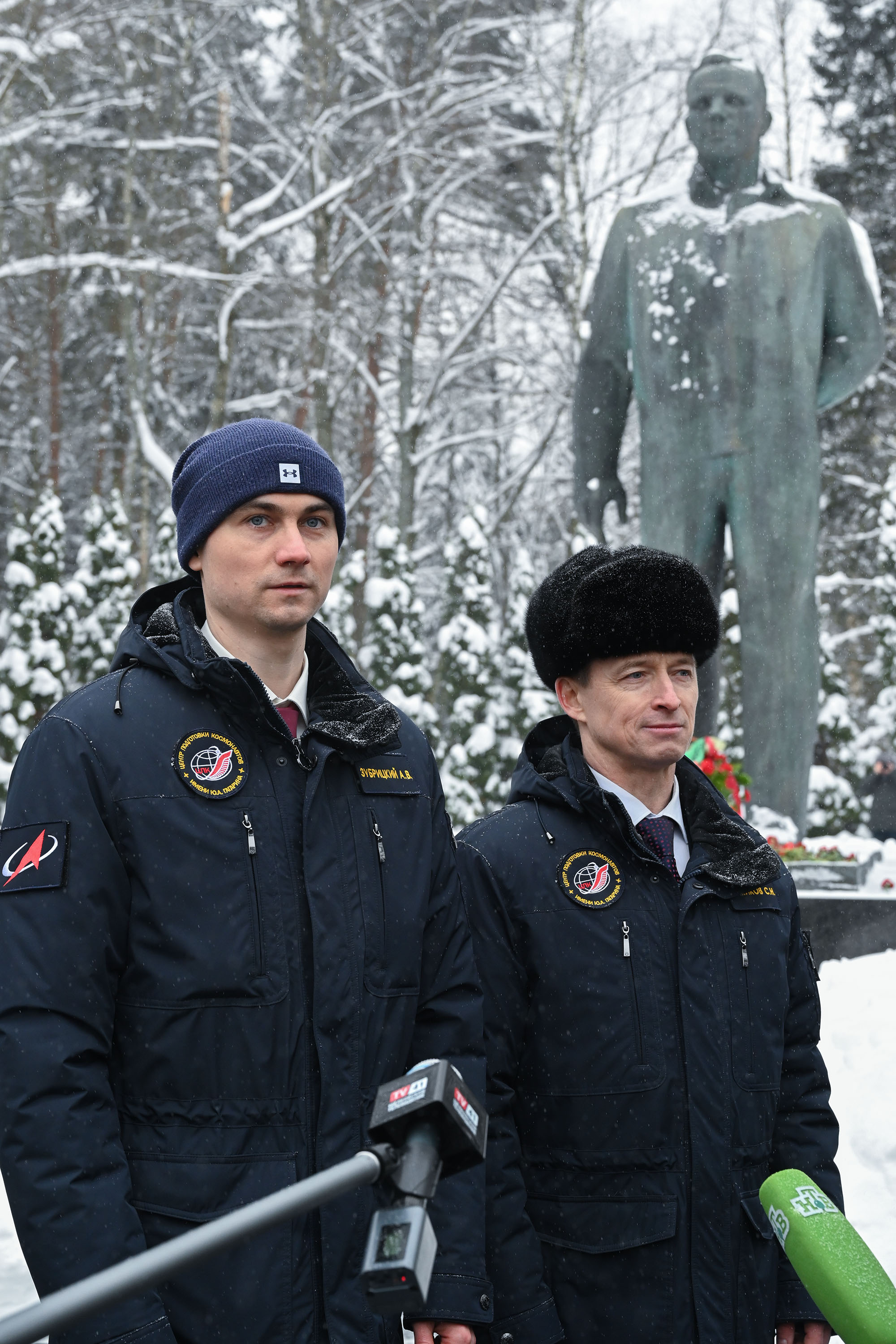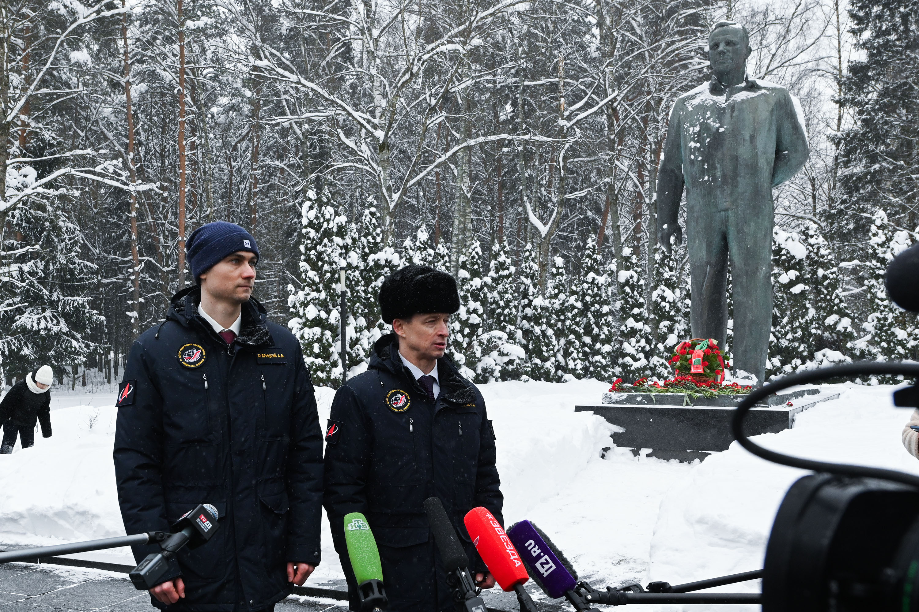 Затем Сергей Рыжиков, Алексей Зубрицкий и Кирилл Песков сделали памятные фотографии, ответили на вопросы журналистов и направились в Центр подготовки космонавтов для участия в традиционной торжественной церемонии чествования экипажа.