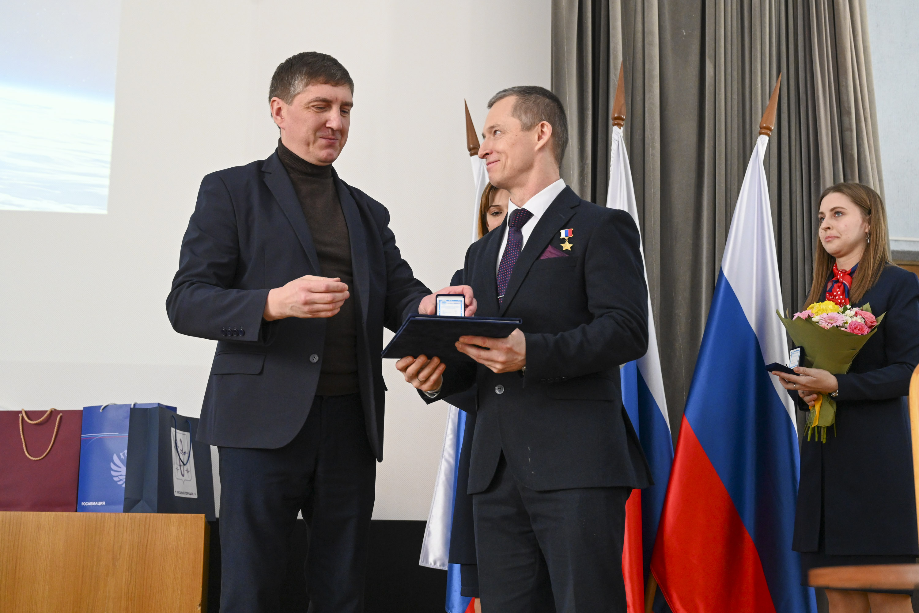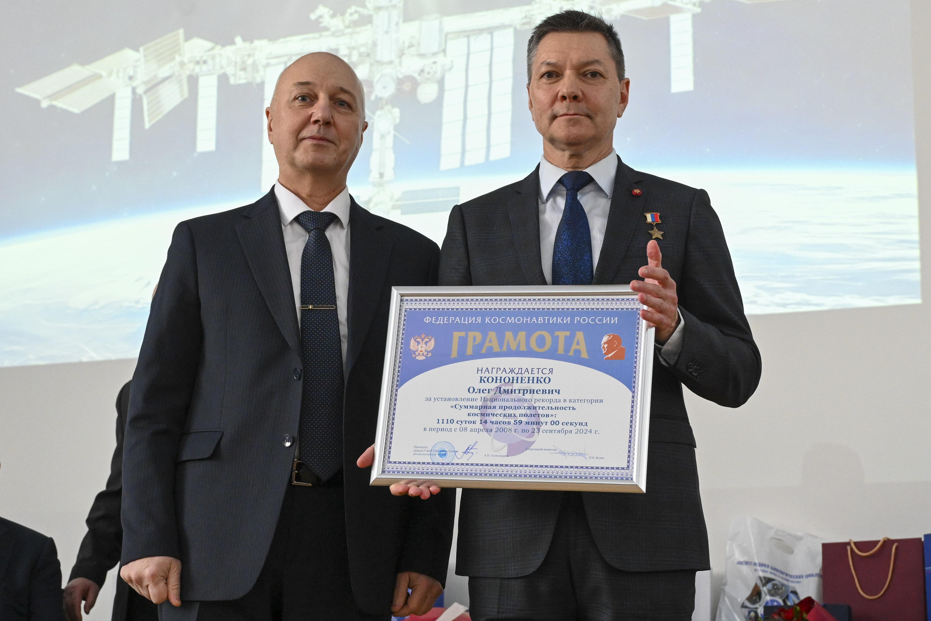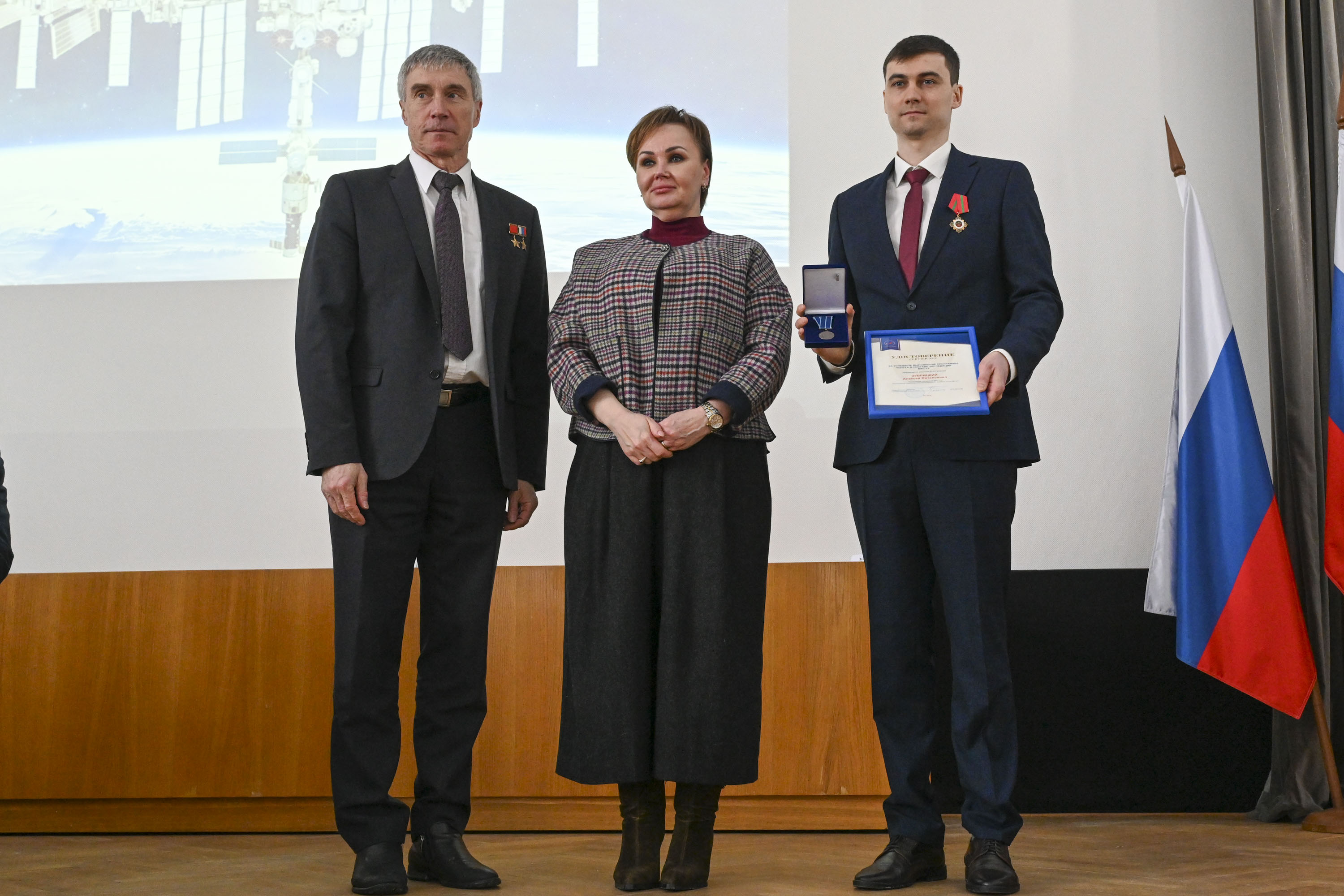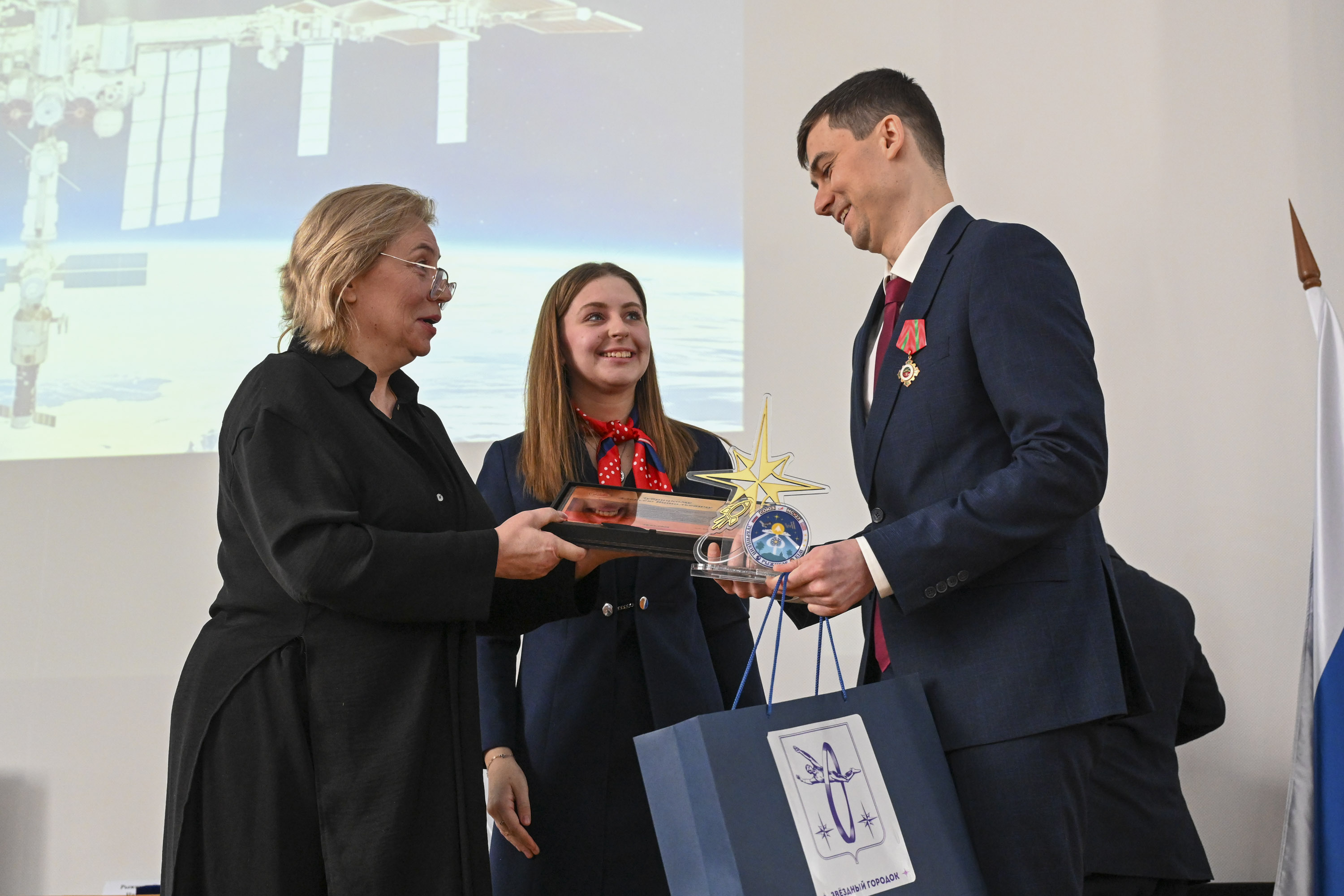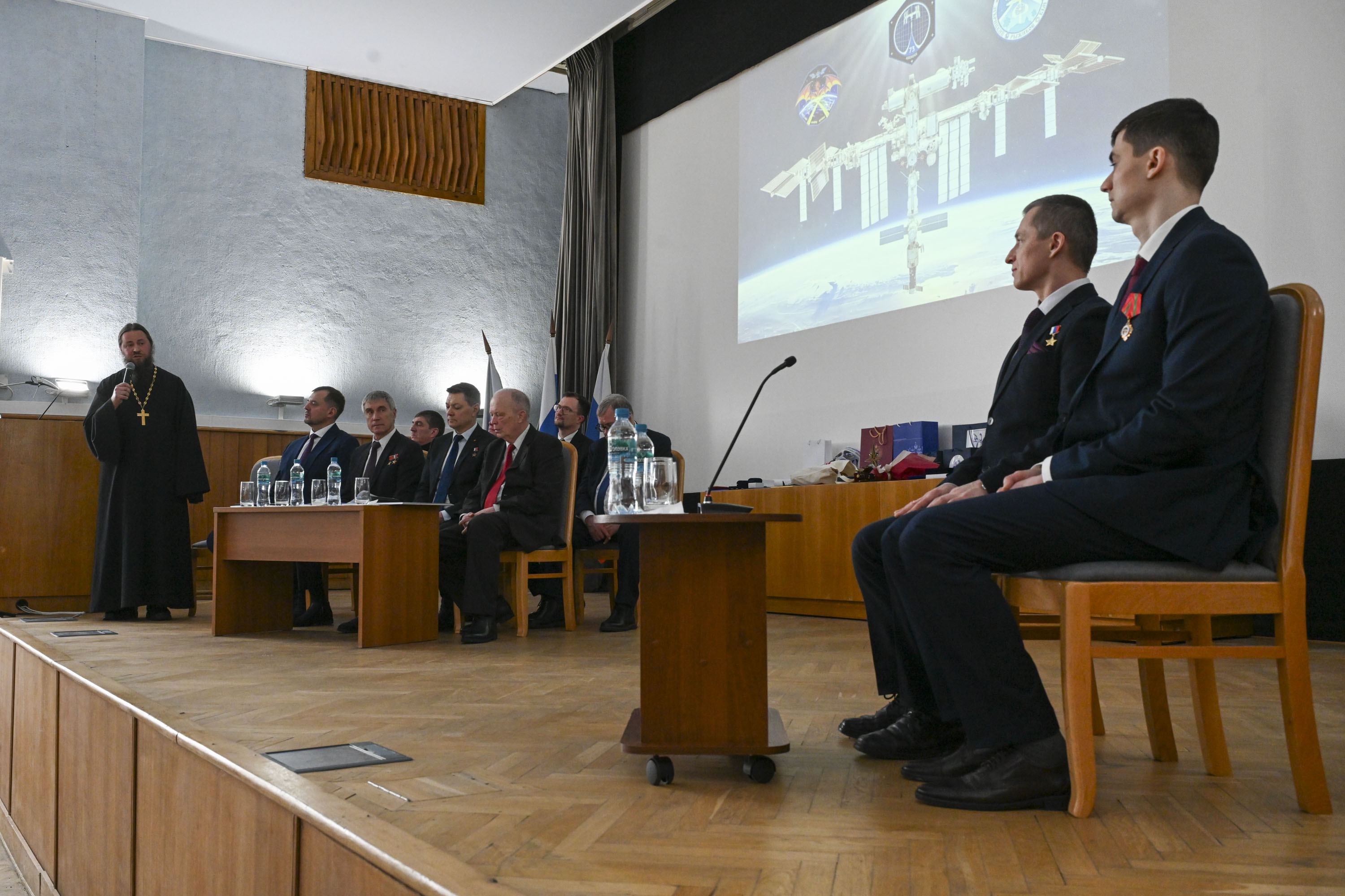 Открыл торжественную часть и.о. начальника Центра подготовки космонавтов Олег Кононенко. Он предоставил слово заместителю командира отряда космонавтов, Герою России, лётчику-космонавту РФ Сергею Прокопьеву. Его доклад был посвящён анализу подготовки к полёту и работе экипажа на МКС.