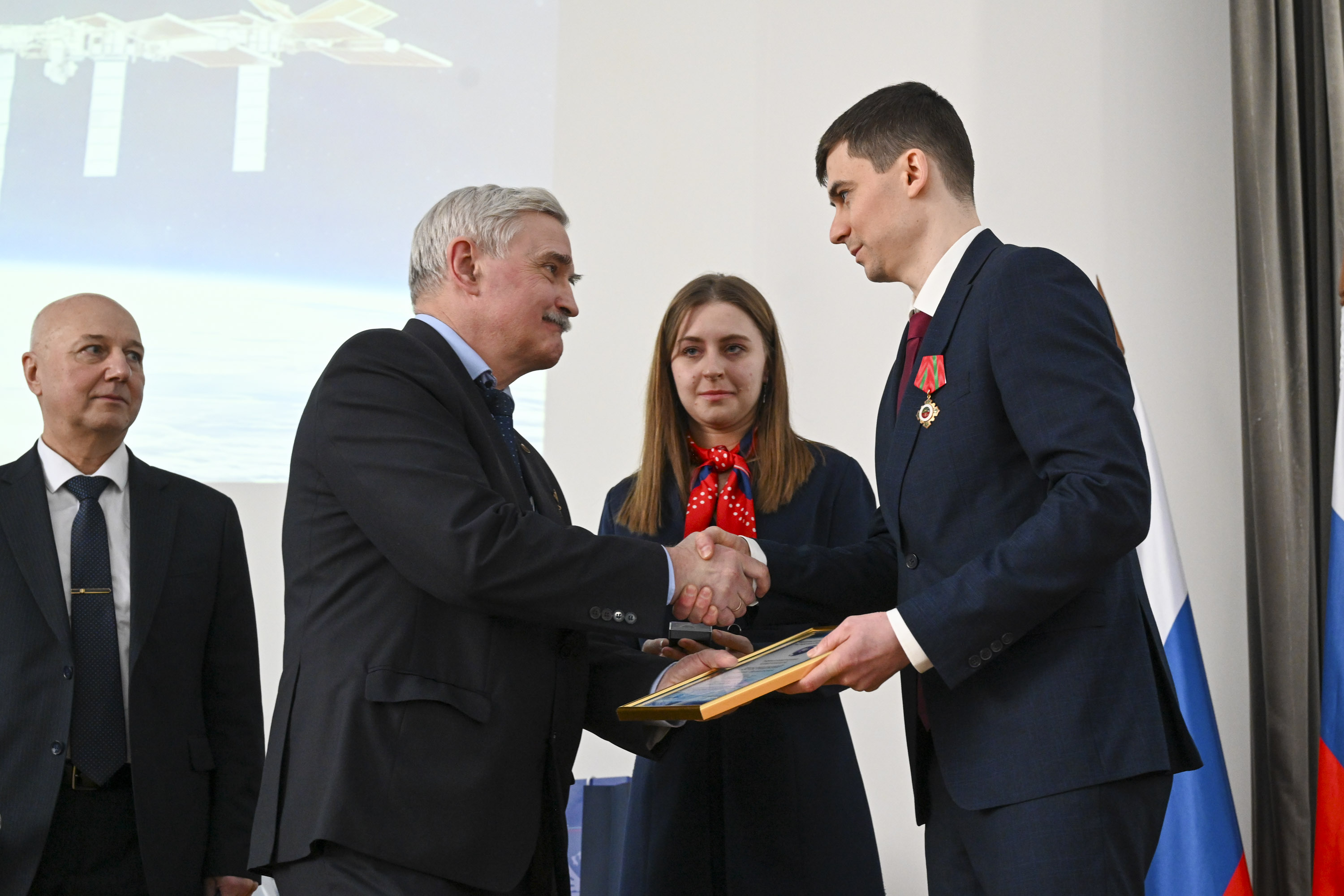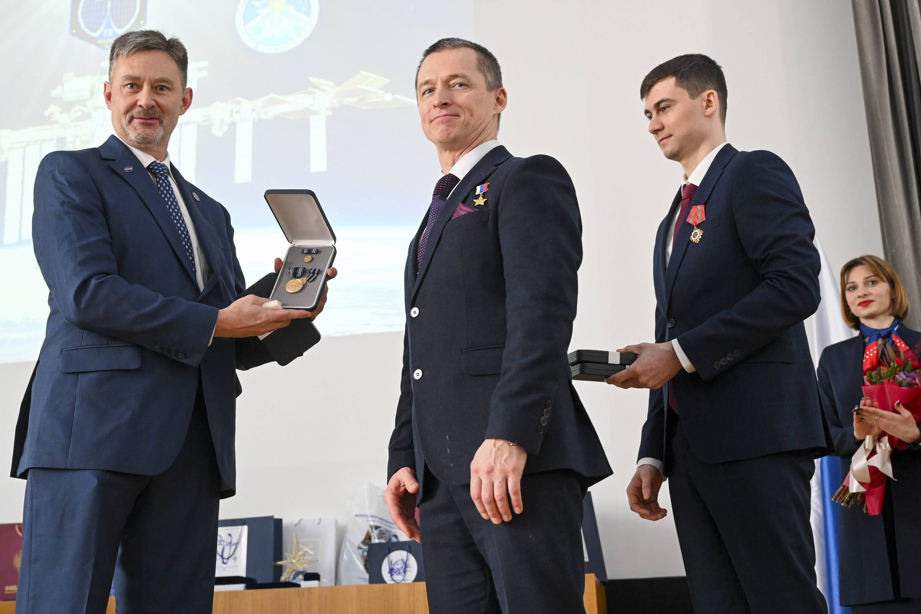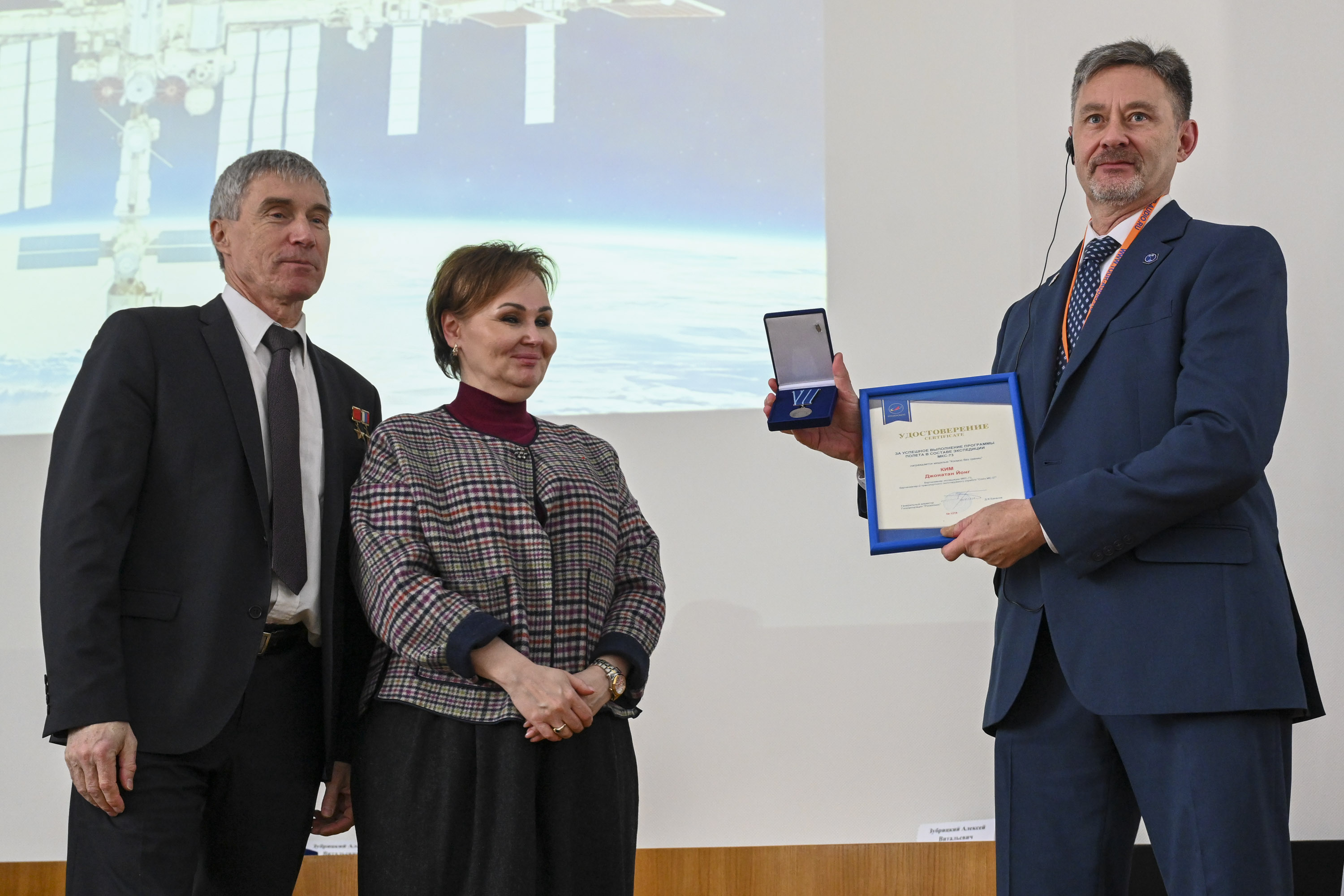Сергей Крикалёв, заместитель генерального директора по пилотируемым программам Госкорпорации «Роскосмос», Герой Советского Союза, Герой России, лётчик-космонавт СССР также поздравил российских членов экипажа МКС-73 с успешным завершением программы полёта и вручил им ведомственные награды: знак К.Э. Циолковского командиру корабля Сергею Рыжикову и медаль Ю.А. Гагарина – бортинженеру Алексею Зубрицкому. Также медалью «Космос без границ» приказом Роскосмоса награжден астронавт NASA, бортинженер-2 Джонатан Ким.
