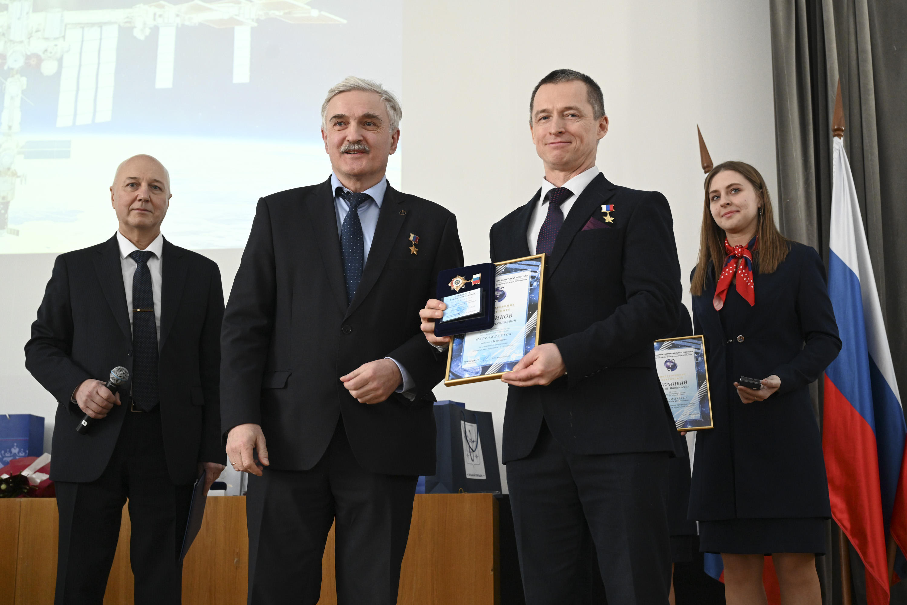 От имени коллектива РКК «Энергия» космонавтов и всех собравшихся поздравил Сергей Романов, первый заместитель генерального конструктора корпорации, главный конструктор пилотируемых космических комплексов: