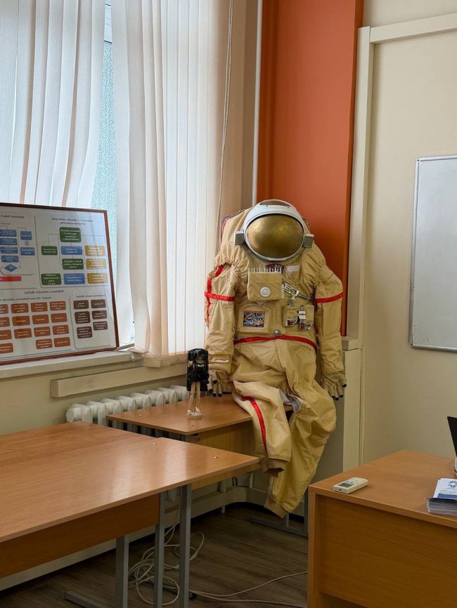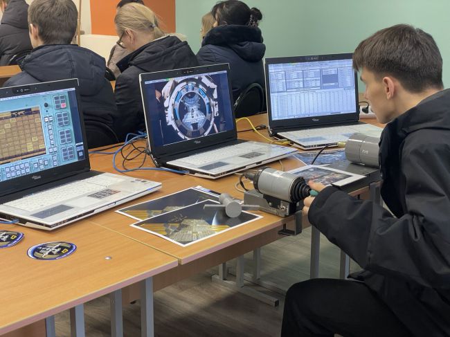 Сотрудники Центра продемонстрировали мобильный тренажёр ручного сближения и стыковки пилотируемого корабля. Будущие абитуриенты получили уникальную возможность попробовать себя в роли командира корабля «Союз». В качестве индивидуальных средств защиты ребятам показали аварийно-спасательный скафандр «Сокол-КВ2» и макет скафандра для выхода в открытый космос типа «Орлан».