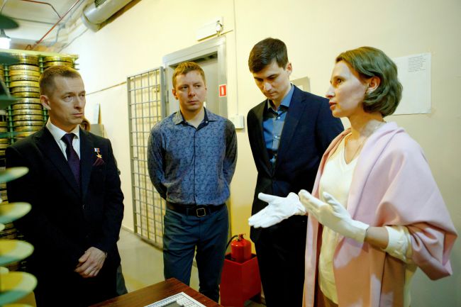 Космонавты Роскосмоса Сергей Рыжиков, Алексей Зубрицкий и Кирилл Песков стали гостями «Космического классного часа» – проекта, который реализует РГАНТД. Перед началом встречи со школьниками и студентами для почётных посетителей архива провели экскурсию: показали фонды и рассказали про особые условия, в которых хранятся документы по истории ракетно-космической отрасли.