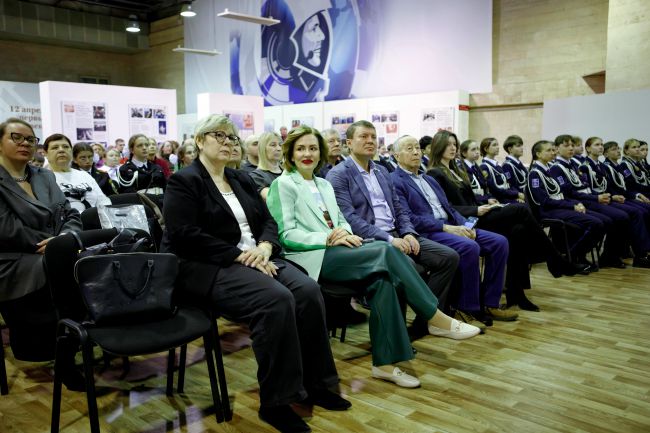 Перед началом разговора собравшимся показали фрагмент документального фильма киностудии «Центрнаучфильм» 1975 года «Первый полёт человека в космическое пространство» – раритетные кадры из фондов РГАНТД о подготовке и полёте Юрия Гагарина.