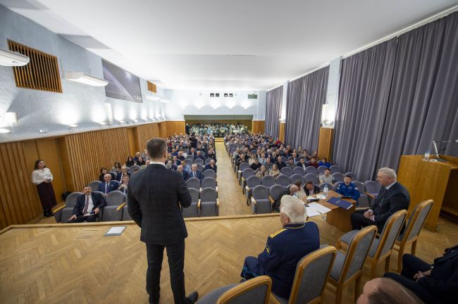 С приветственными словами в адрес сотрудников ЦПК выступил Сергей Романов, первый заместитель генерального конструктора, главный конструктор пилотируемых космических комплексов в рамках программы МКС РКК «Энергия»: