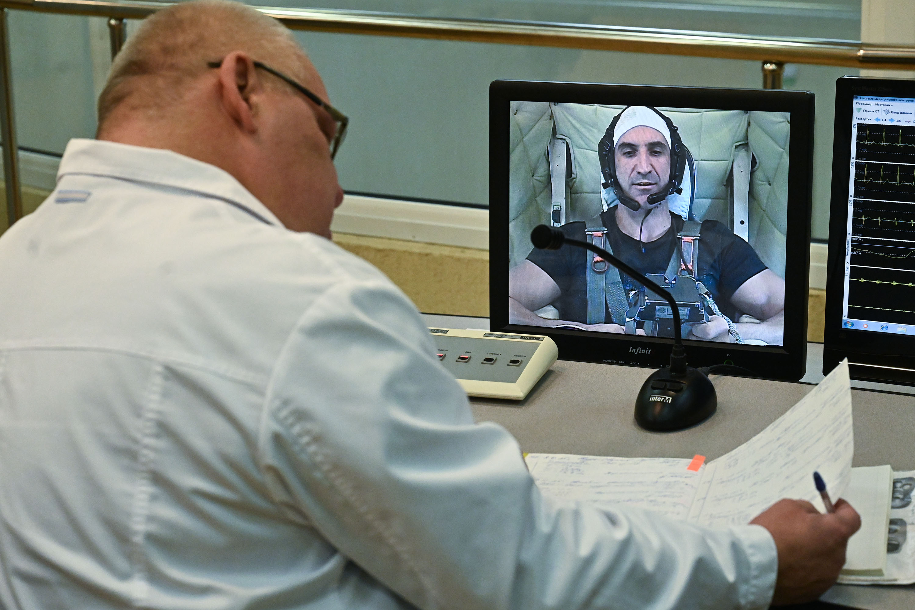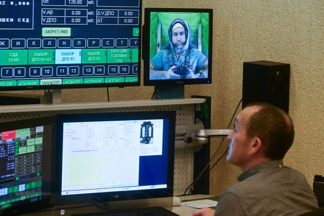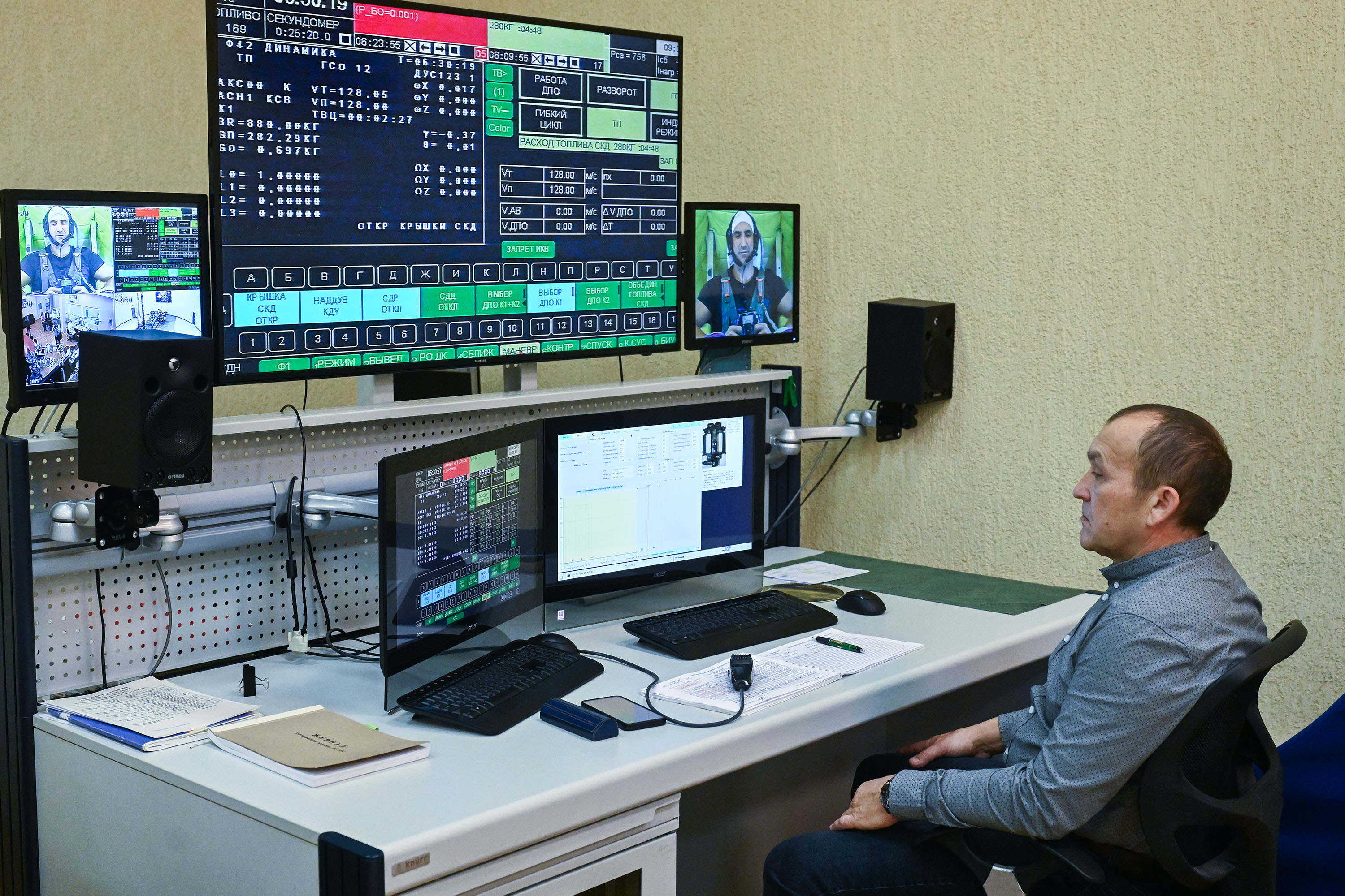 В начале обучения по теме РУС у космонавтов Роскосмоса Арутюна Кивиряна, Александра Калябина и Сергея Тетерятникова прошло практическое занятие, на котором они ознакомились с тренажёром по ручному управляемому спуску, методическими рекомендациями и особенностями работы при выполнении тренировок.