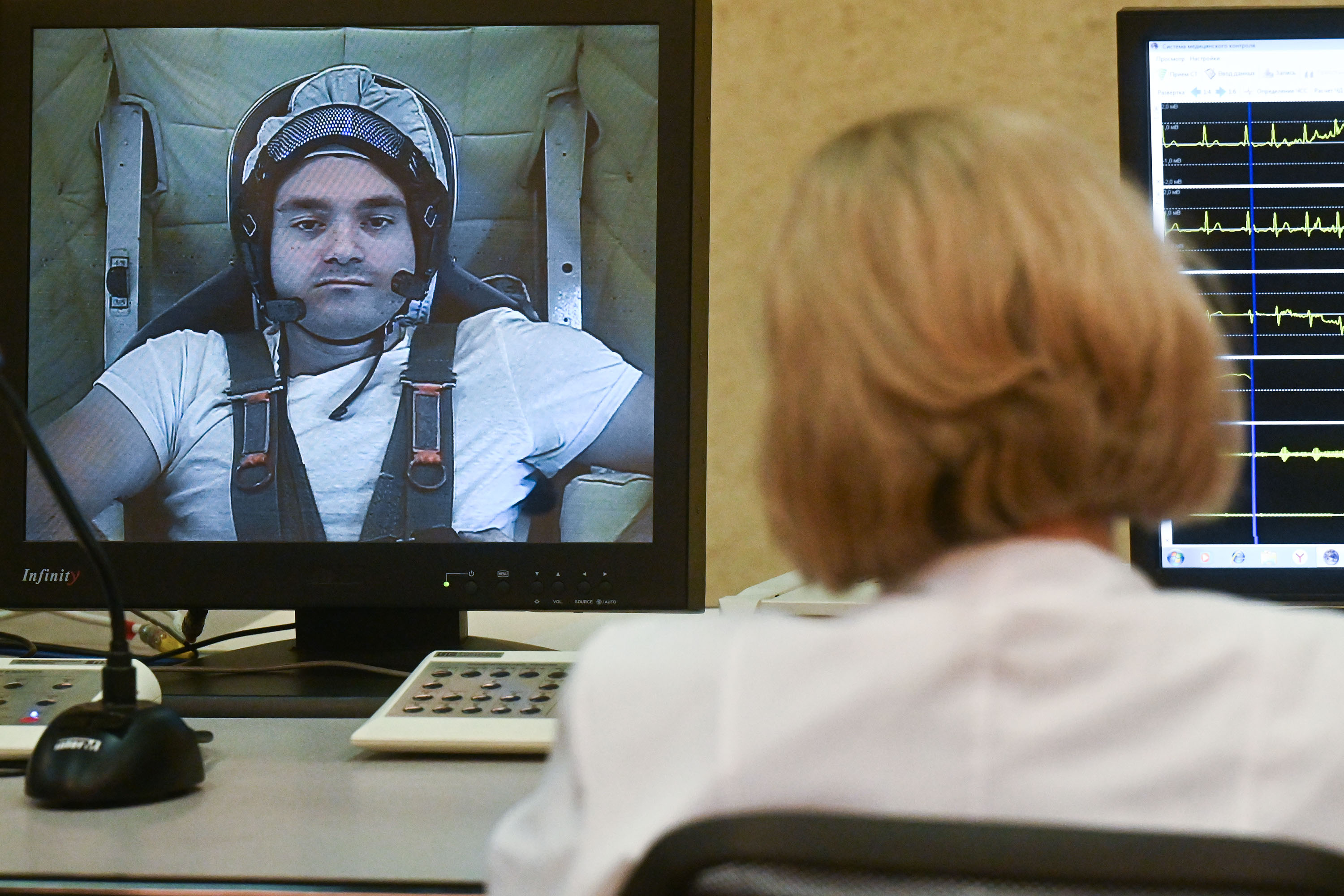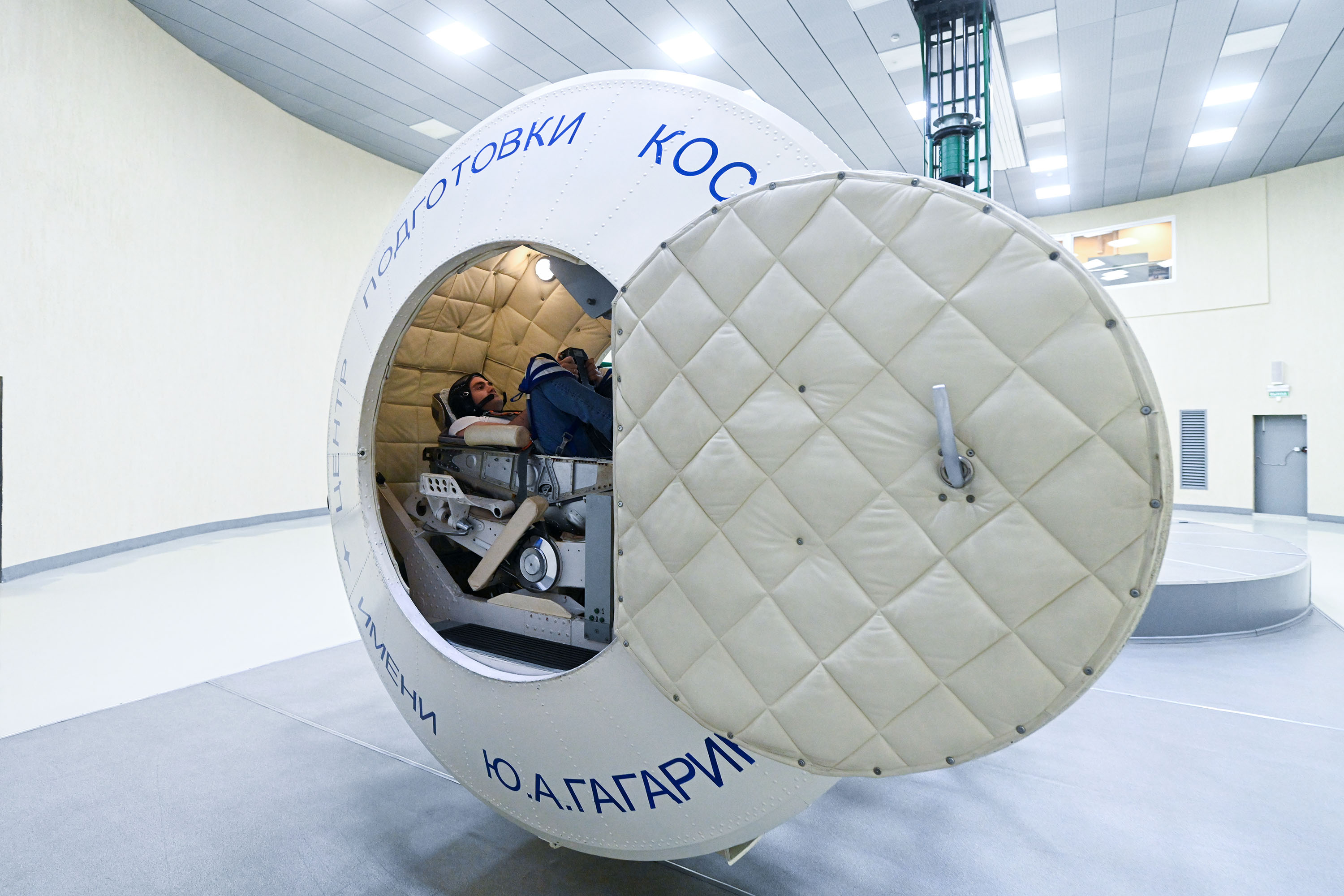 Дальнейшая подготовка заключалась в выполнении непосредственно 14-ти тренировок по РУС. 12 тренировок выполняются в статике и две – в динамике. Тренировки в динамике (при вращающейся центрифуге) – 10-я и 14-я по счёту. Режим в динамике имитирует перегрузки, которые экипаж испытывает при прохождении плазмы, при возвращении на Землю, и позволяет ощутить, как изменяется самочувствие и состояние в зависимости от выбранного крена спускаемого аппарата.