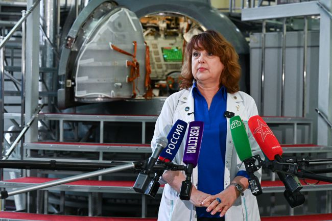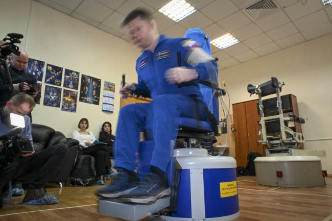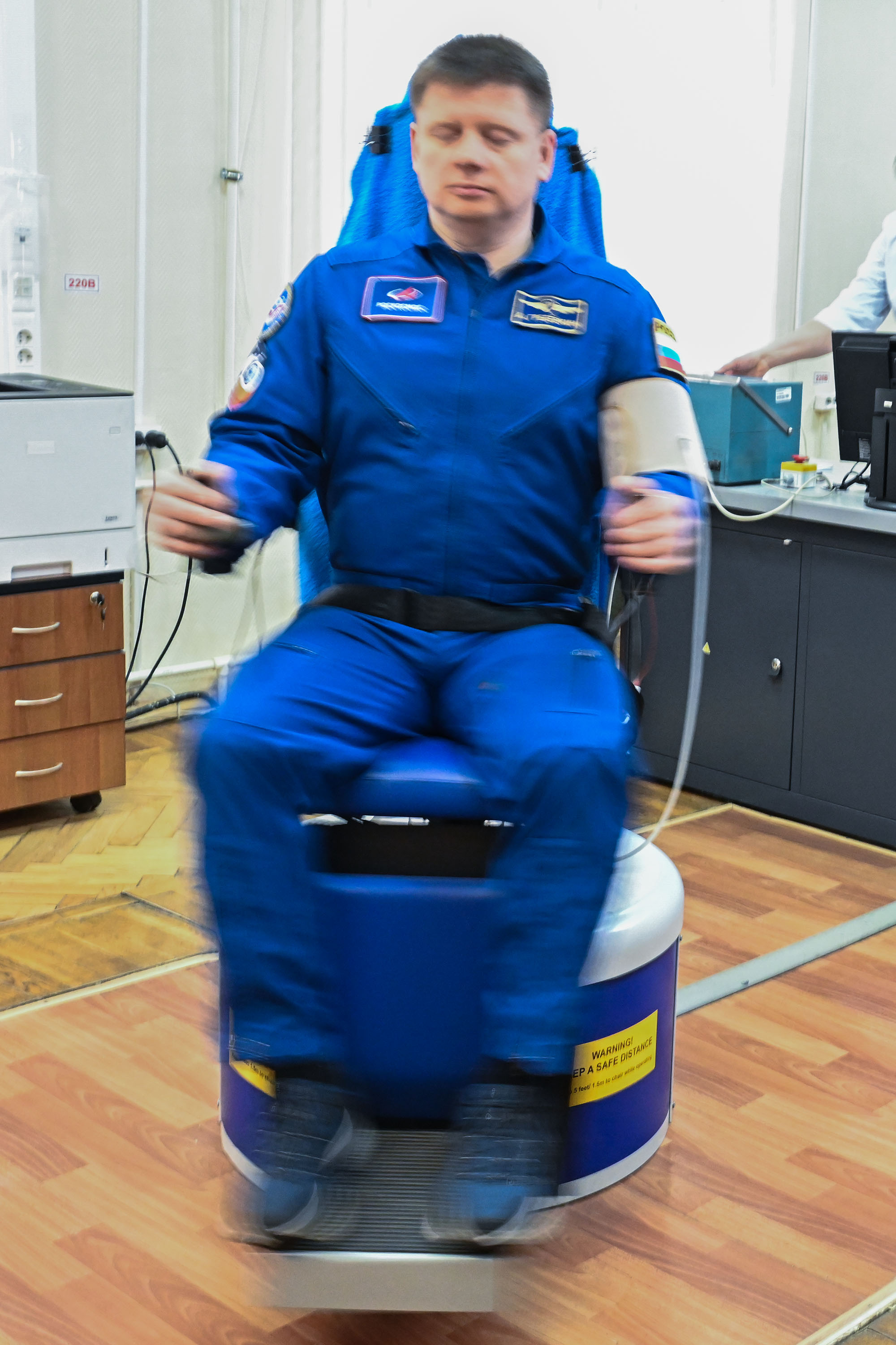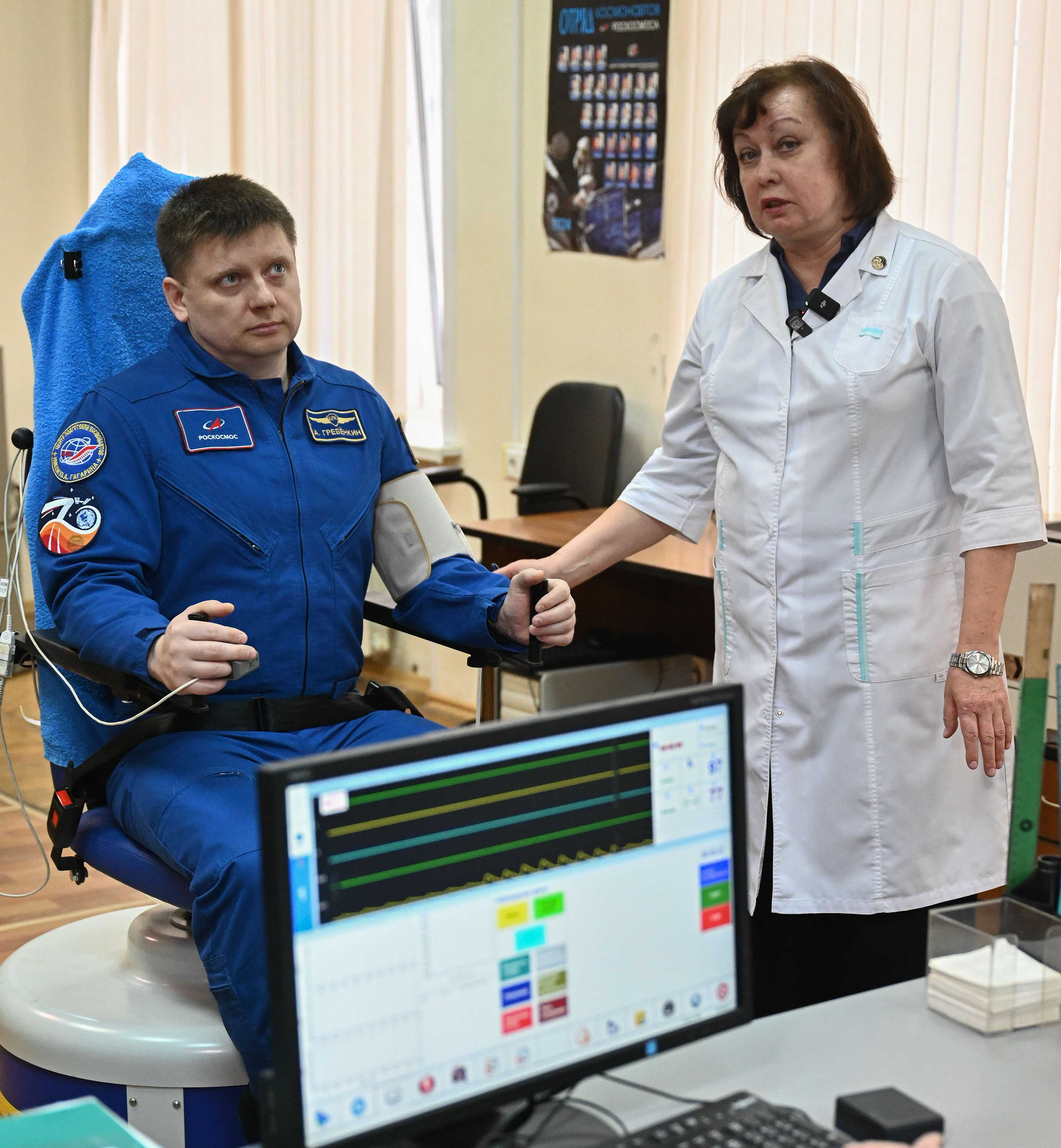 Космонавт Александр Гребёнкин несколько раз продемонстрировал, как проходит исследование на кресле ускорения Кориолиса, а врач функциональной диагностики ЦПК Ирина Коновалова рассказала подробности.