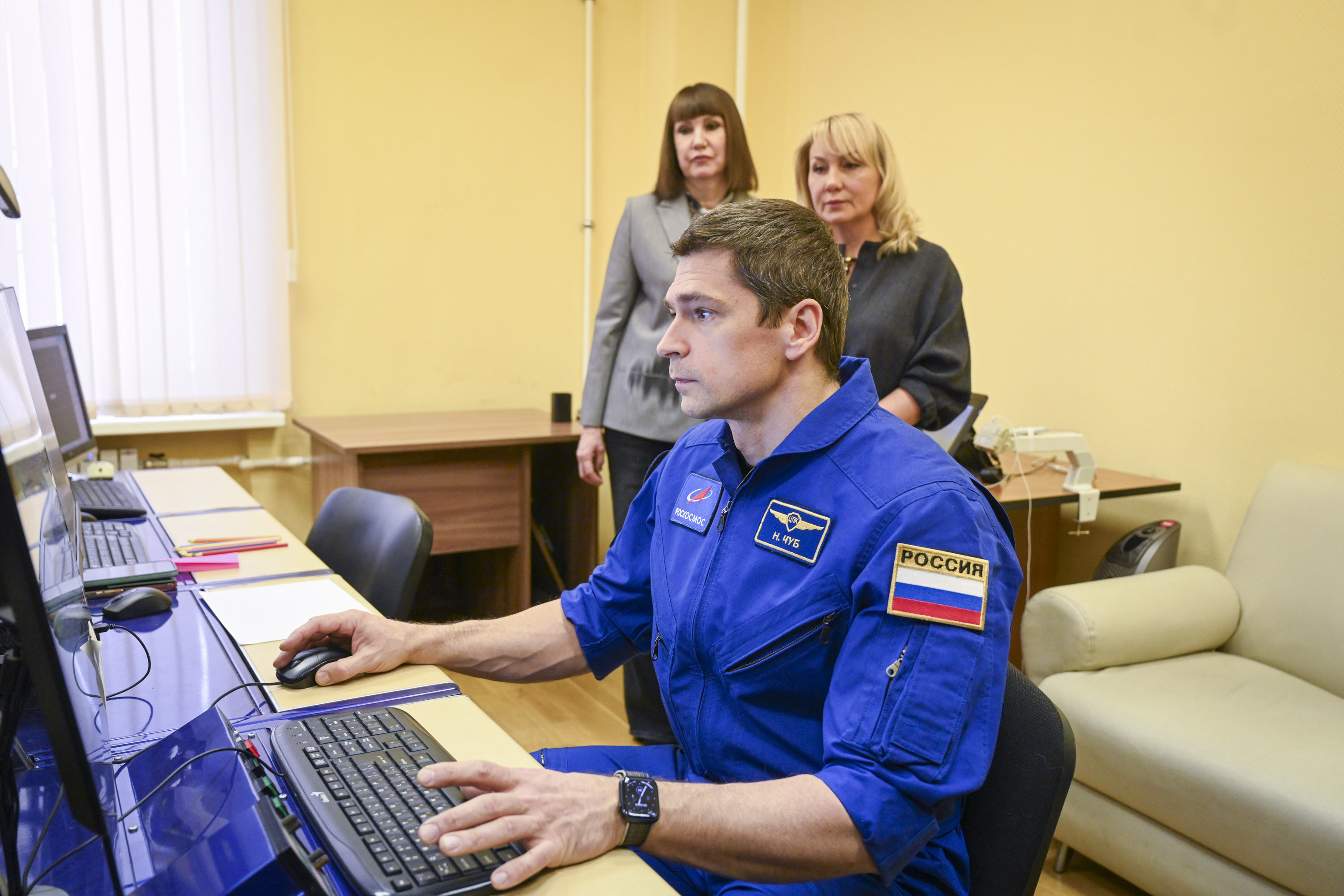 Его коллеги по отряду, космонавты Иван Вагнер, Сергей Прокопьев и Николай Чуб стали участниками психологического тестирования, чтобы представители СМИ получили представление о том, как оно проходит на этапе отбора в отряд.